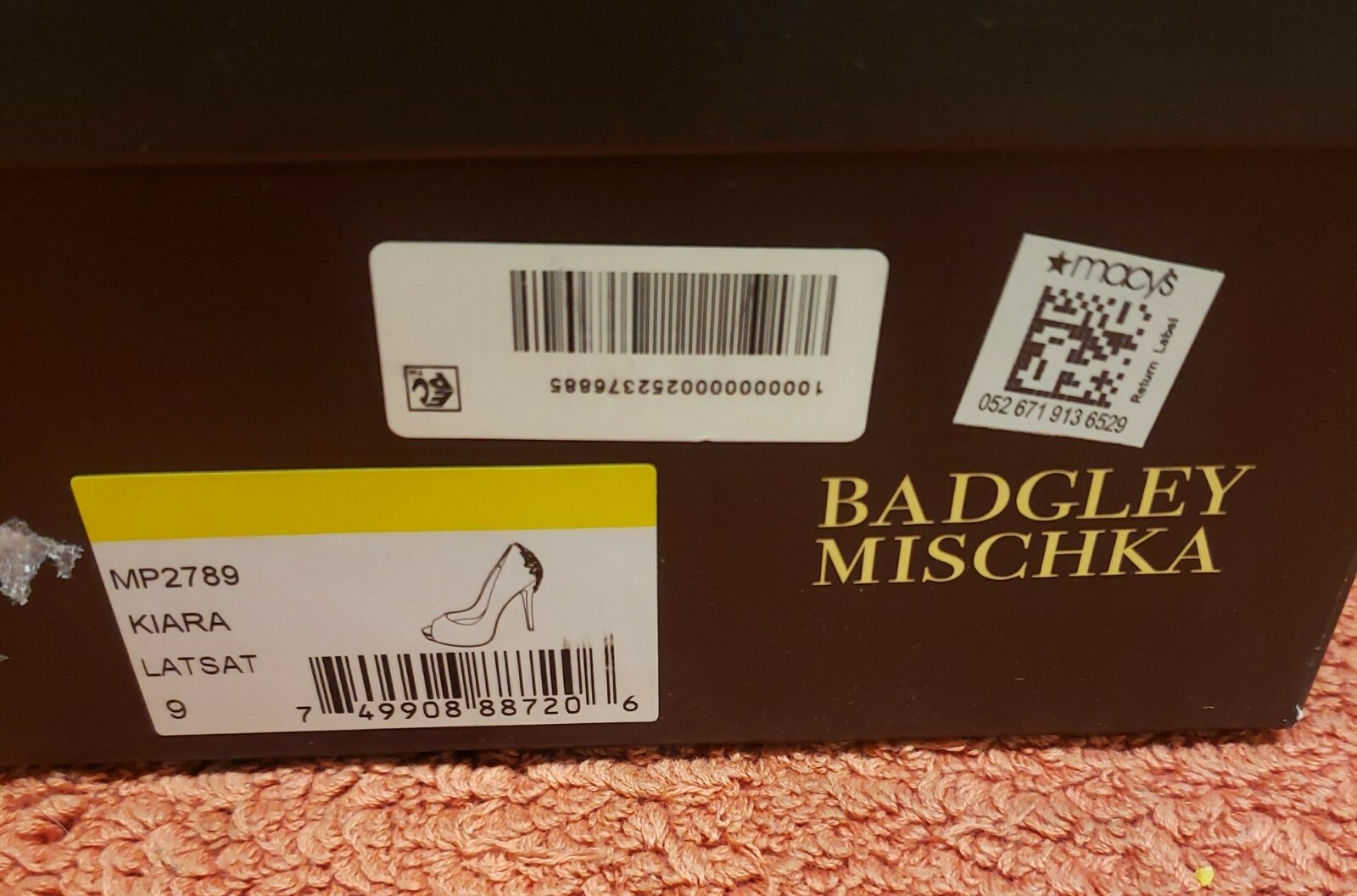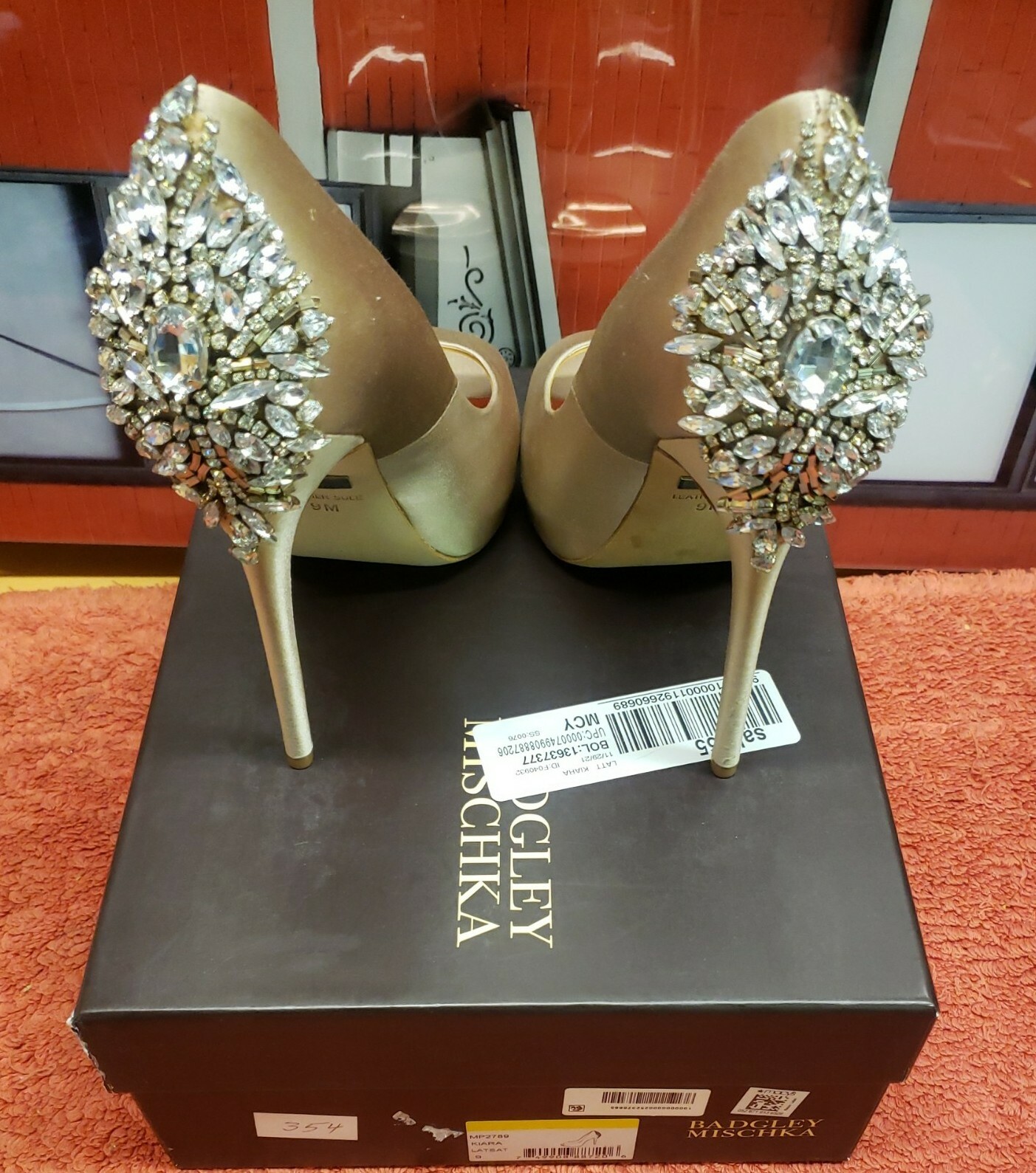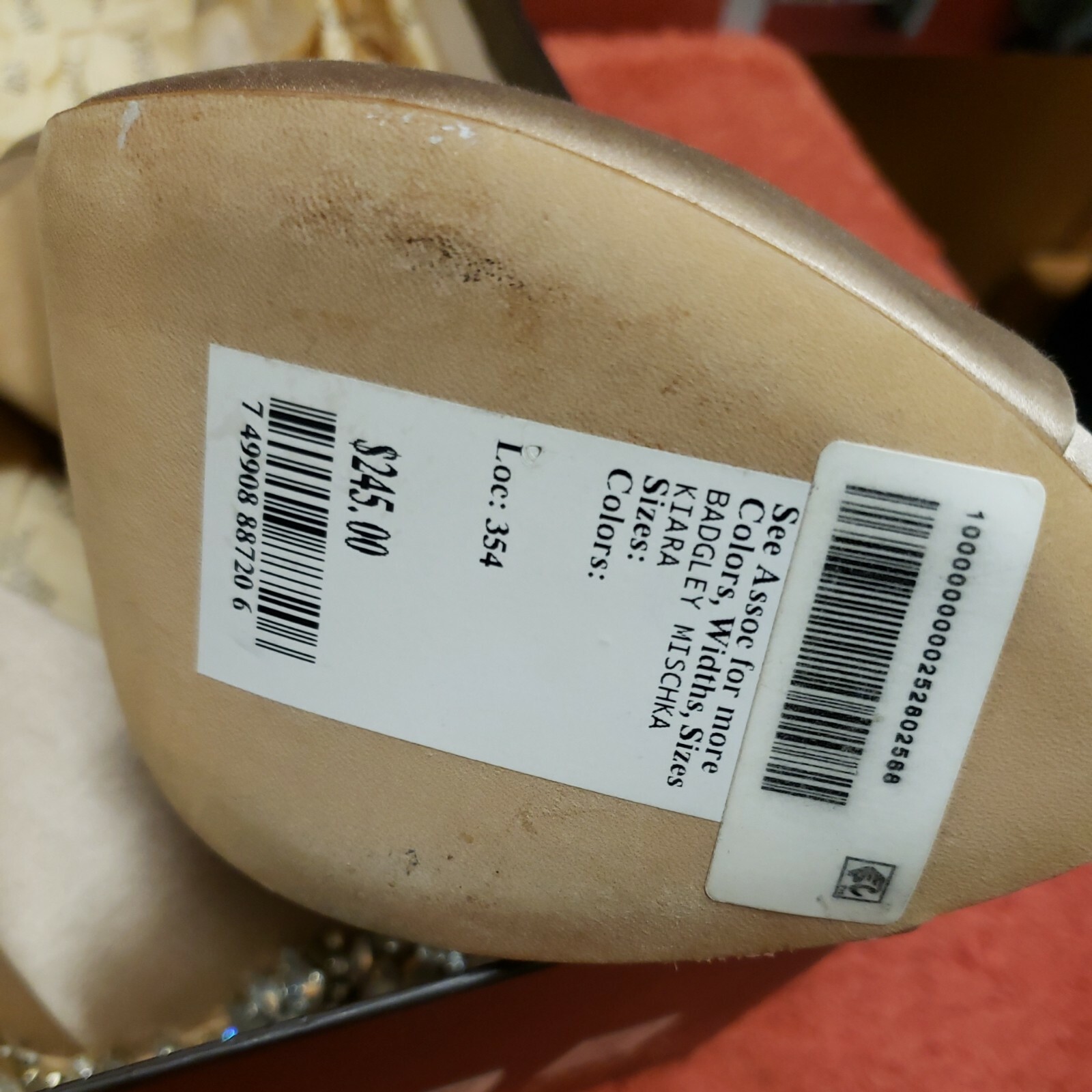 как выглядит Badgley Mischka Kiara Peep Toe Pump Latte Satin Size 9M. фото