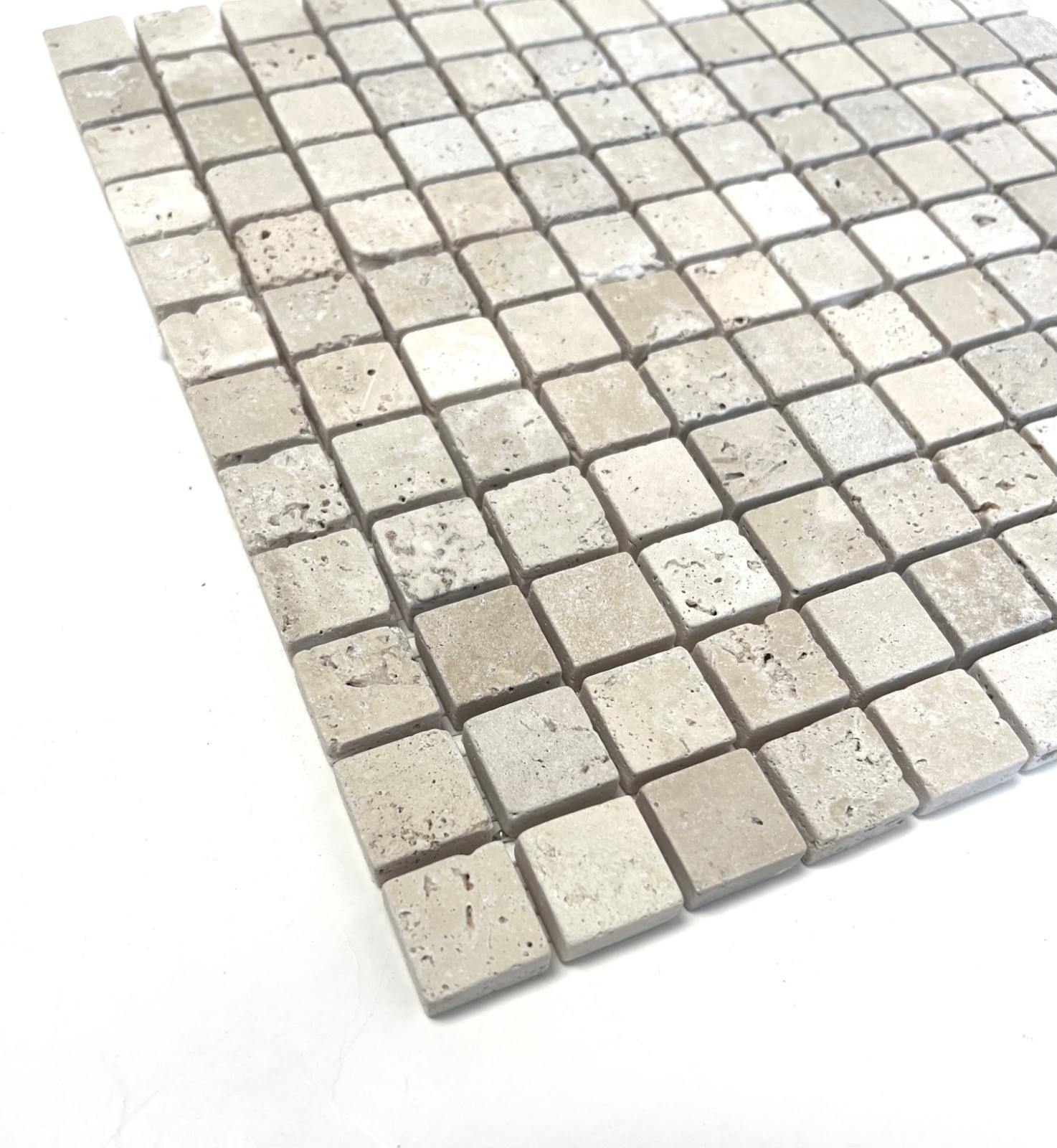 1X1 Light Tumbled Rounded Edge Travertine Wall Mosaic Tile Ivory Backsplash Bath