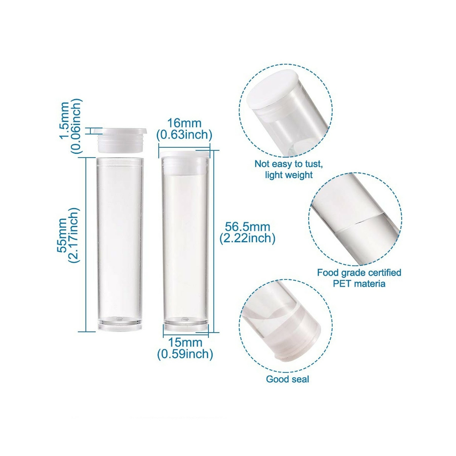 Цвет: 100 tubes, 55x15mm, Clear