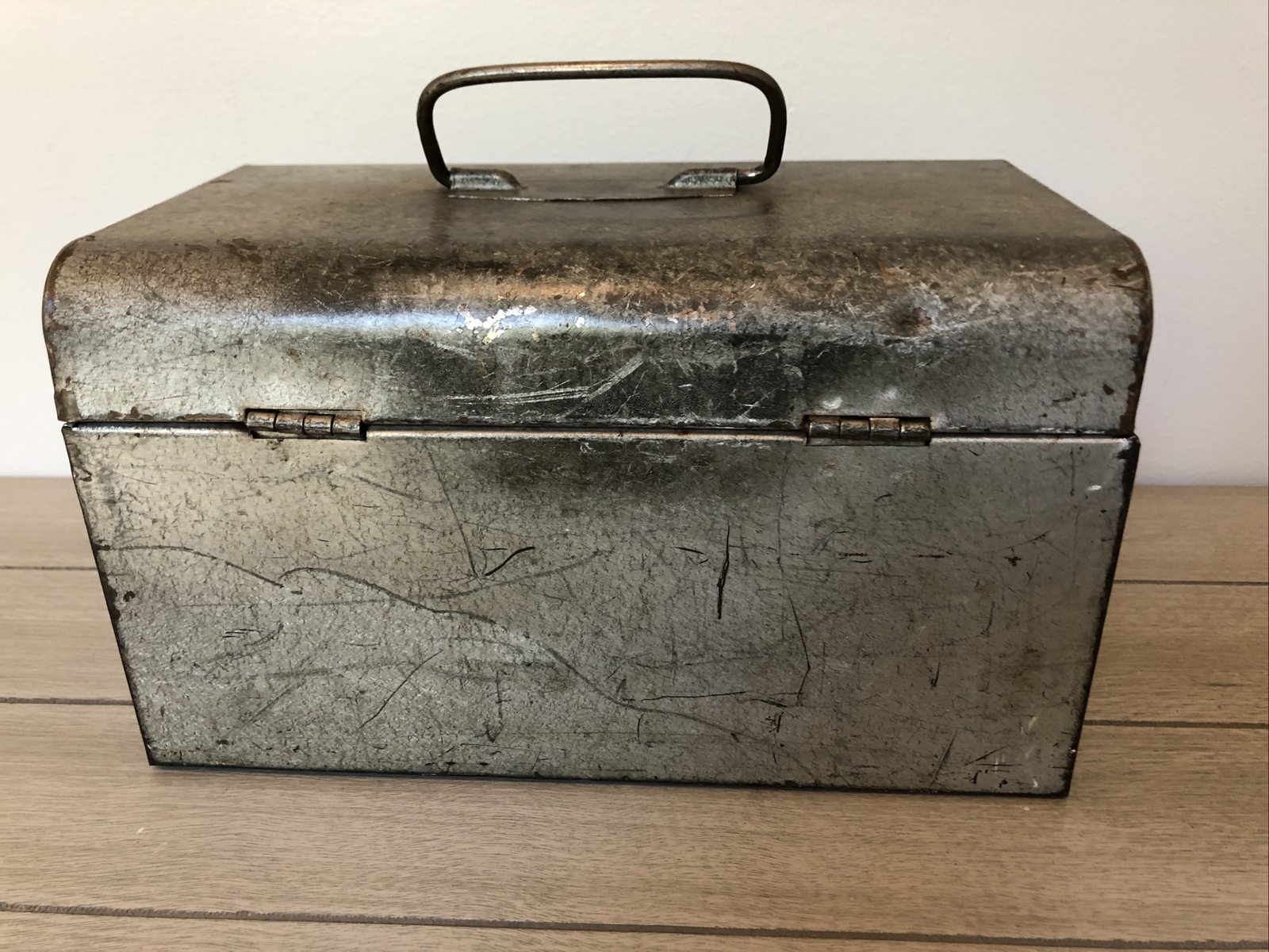 Vintage Metal Storage Case Box for 8mm Movie Reels, Holds 12, Latched w/ Handle