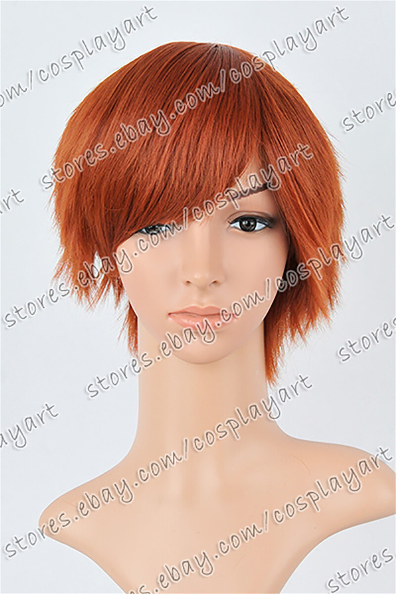 US 14inch Cosplay Wigs with Bangs Copper Red Synthetic Heat Resistant Wigs