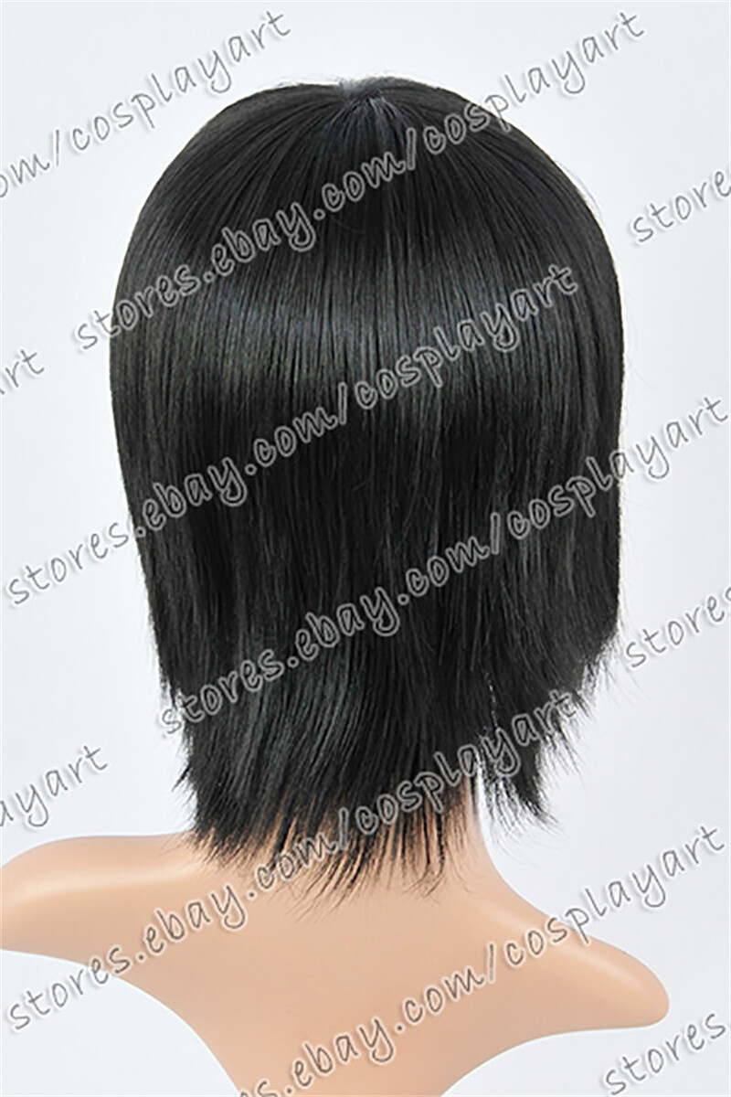 US 14inch Cosplay Wigs with Bangs Black Synthetic Heat Resistant Wigs Daily Wear