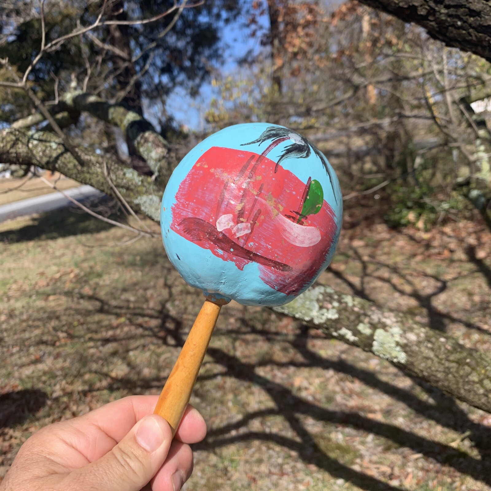 как выглядит Vintage Handpainted Shekere Shaker Maraca Palm Trees Ocean Music Maker  sj10m2 фото