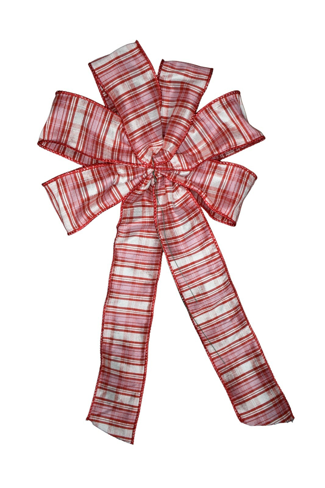 10 Hand Made Red and White Plaid Wired Bow - Christmas Wreath Holiday Valentine
