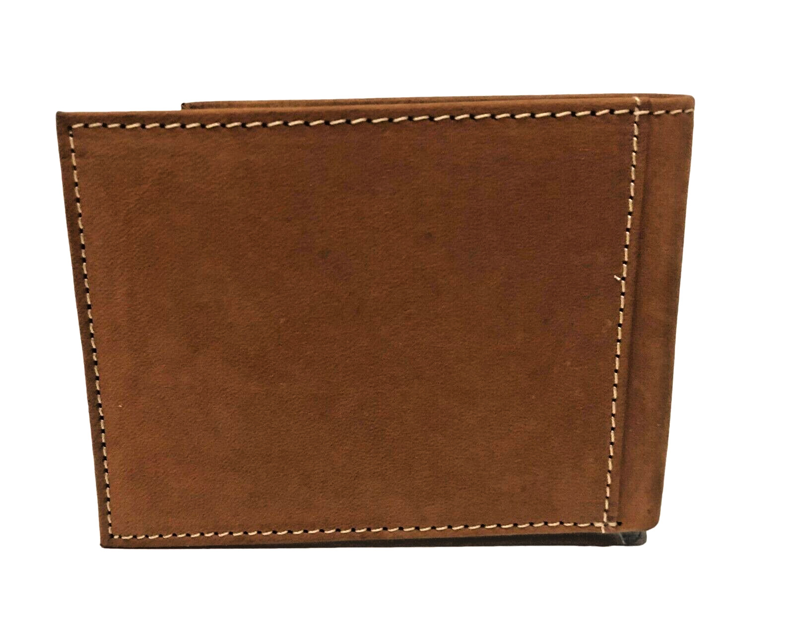 ARIAT Men's Smooth Brown Leather Bifold Wallet USA Flag Patch