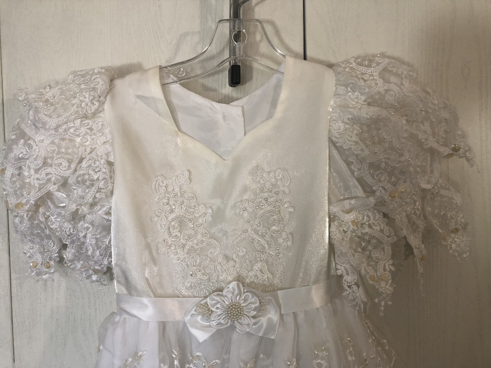 как выглядит Girls S/S Beaded Sequin Lace White Bridal Communion Short Dress Size 6 фото