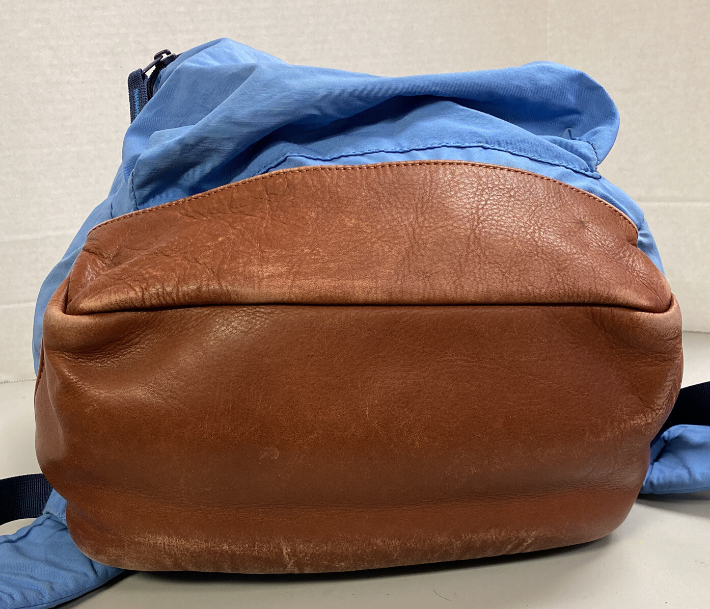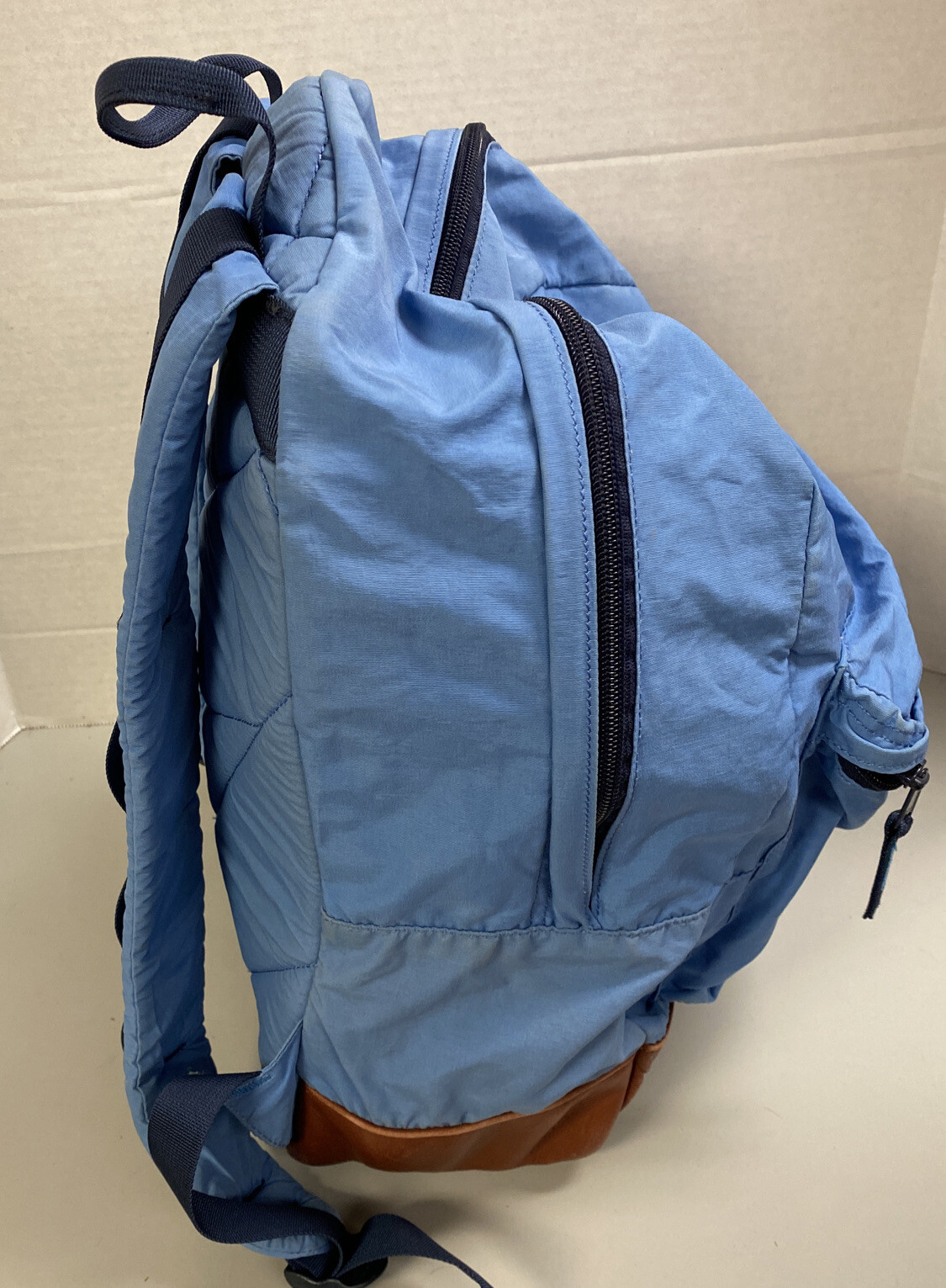 BURTON DAY PACK BACKPACK LIGHT BLUE BROWN LEATHER BOTTOM ADJUSTABLE VGC