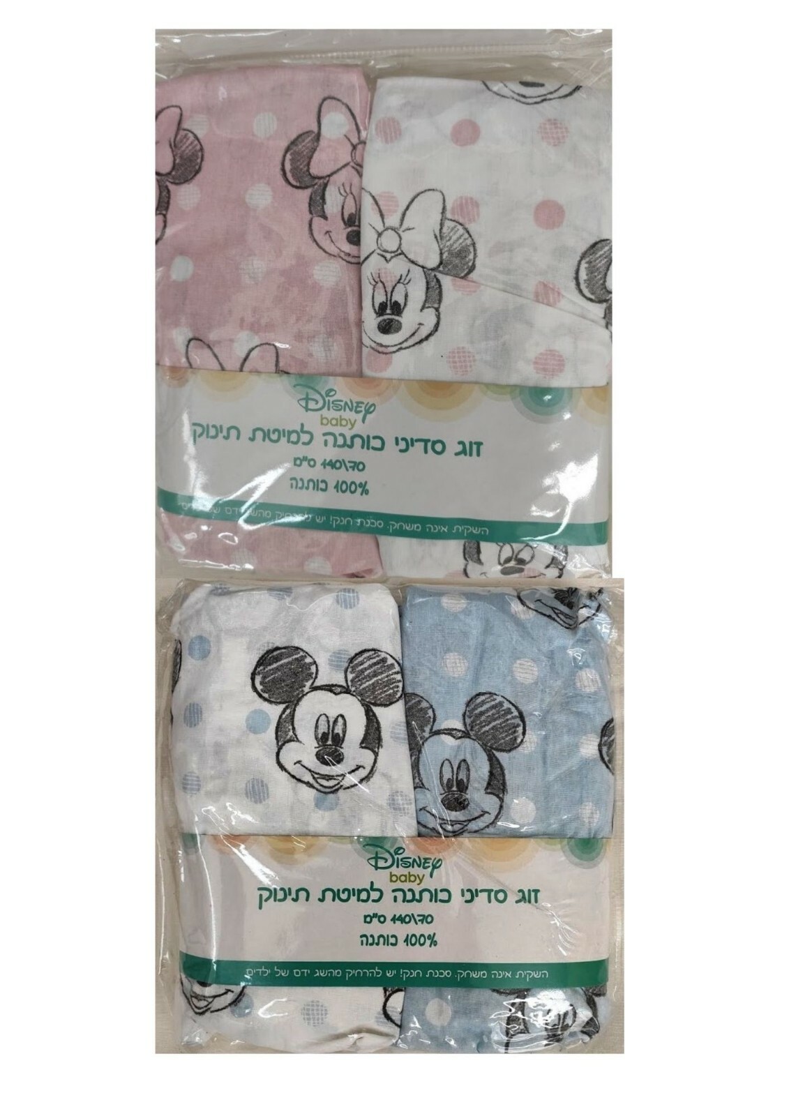Disney Mickey Mouse Set of 2 Fitted Crib Sheet Blue 100 Cotton