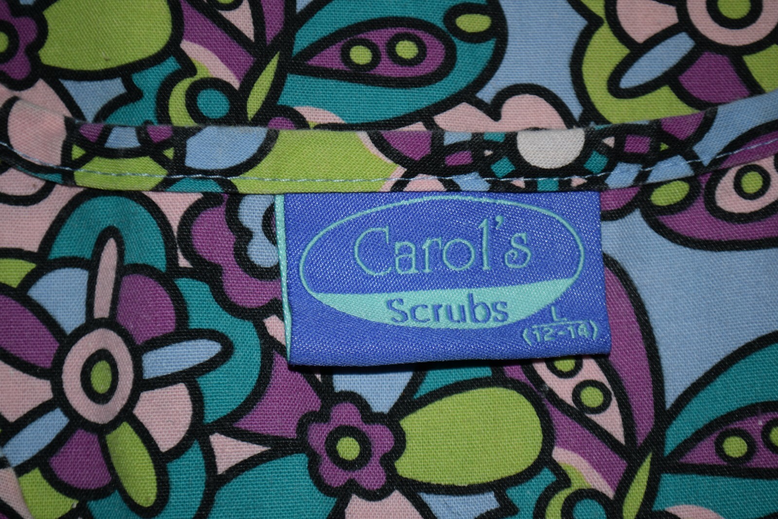 Carol's Scrubs Women's Size L 12-14 Colorful Flowers Butterflies Scrub Top