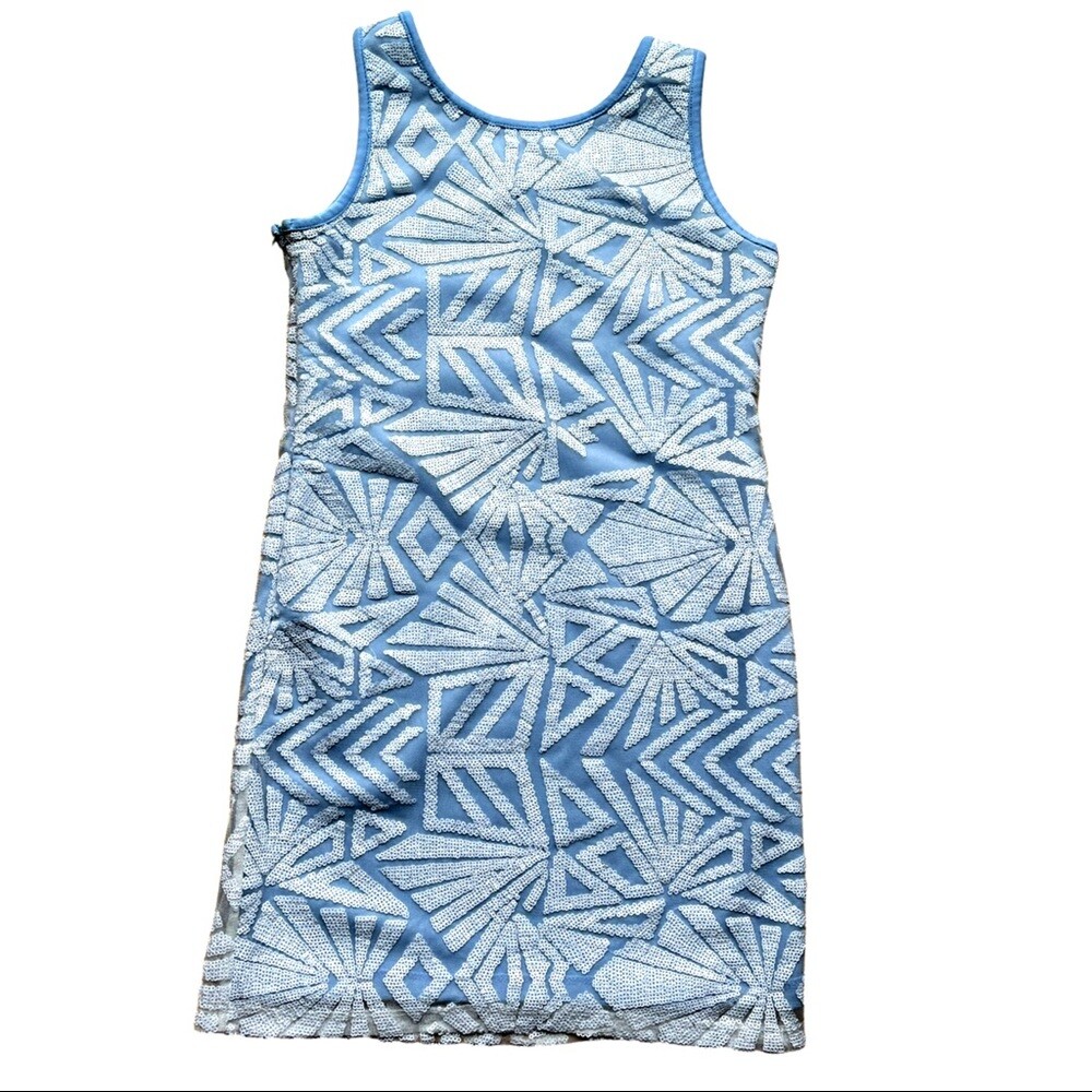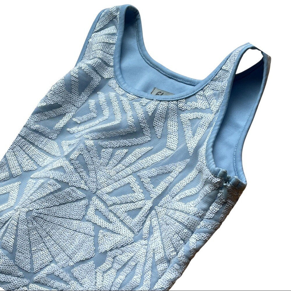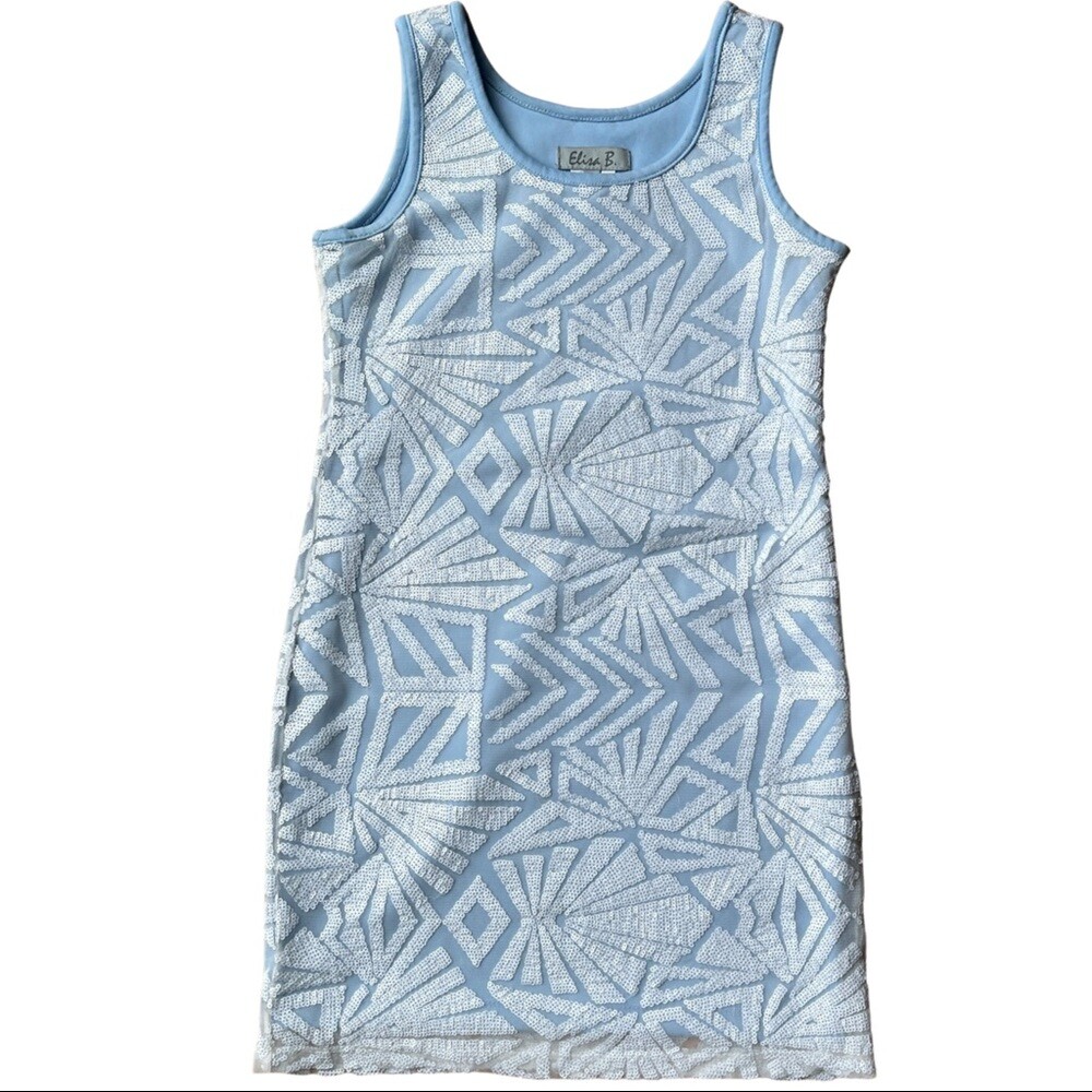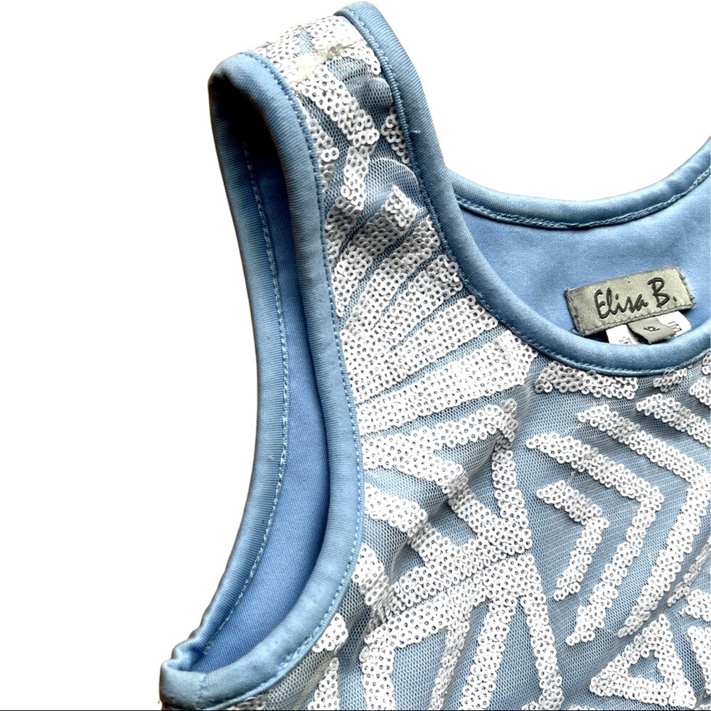 Elisa B Girl s Size 12 Blue and White Sequince Fitted Party Dress