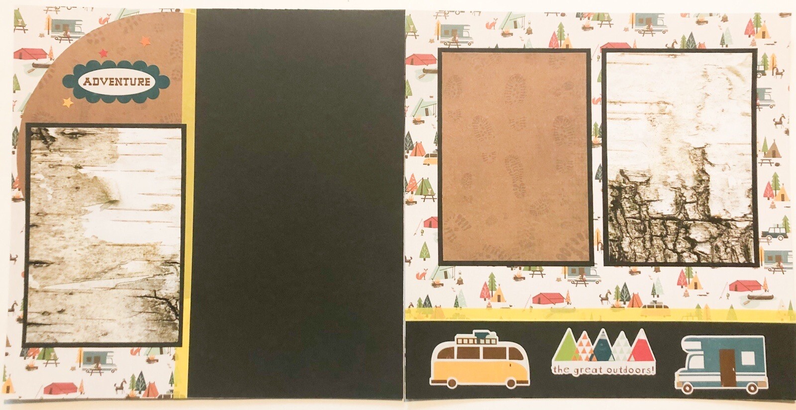Camping Scrapbook pages, 12 by 12 Ready for 4 by 6 photos, Camping Layouts