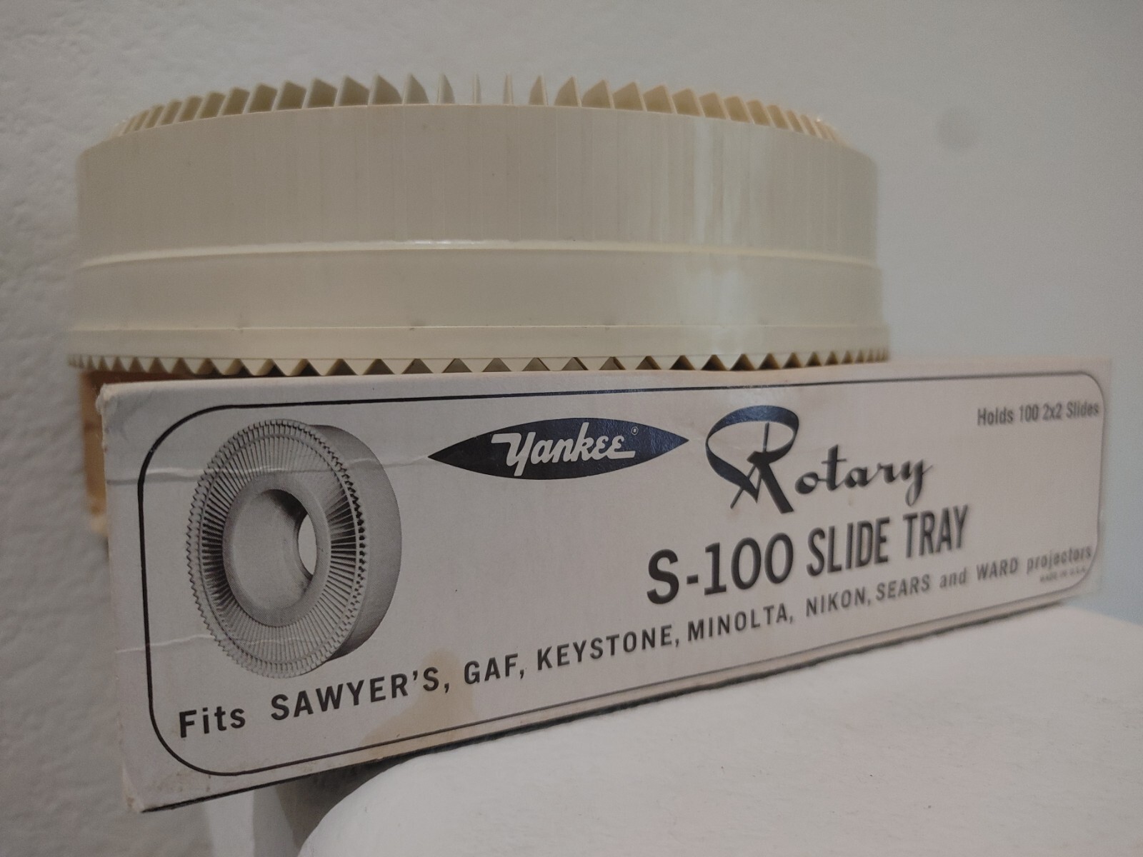 как выглядит Vintage GAF Sawyers Rotary Rototray 100 Slide Tray Carousel - White Color фото