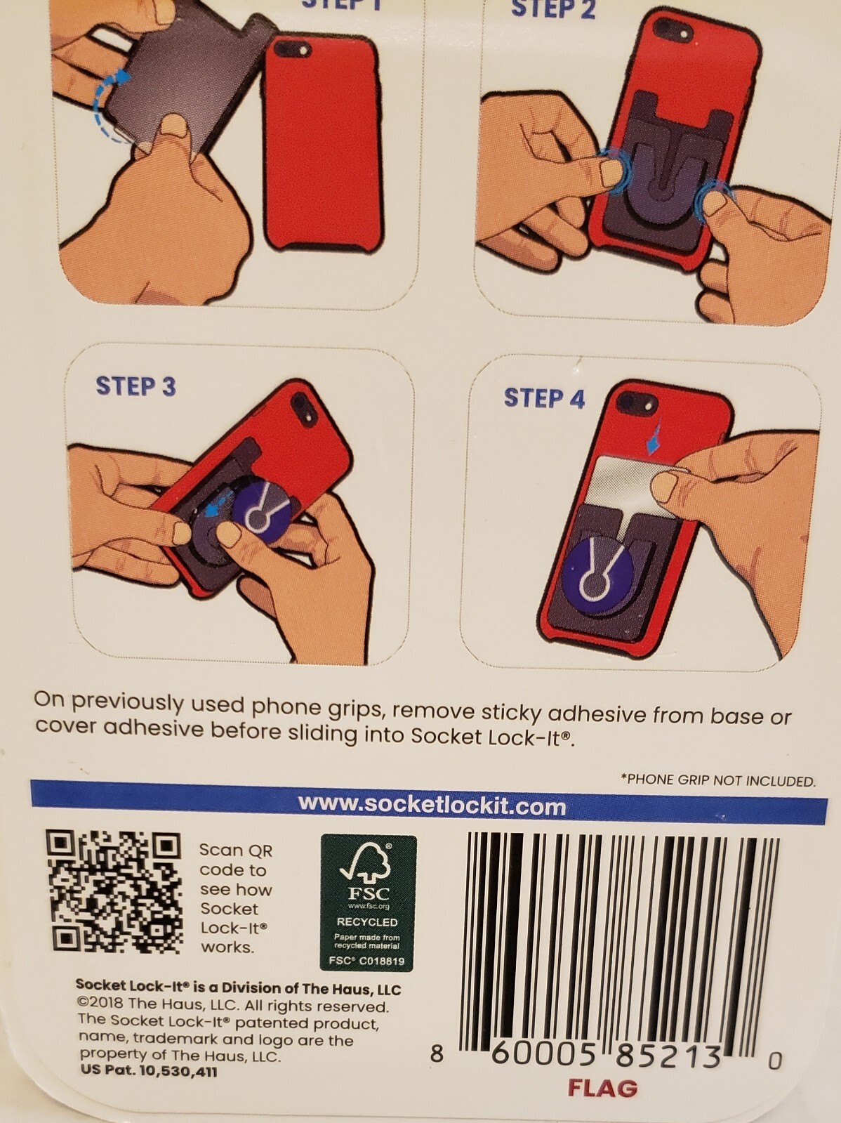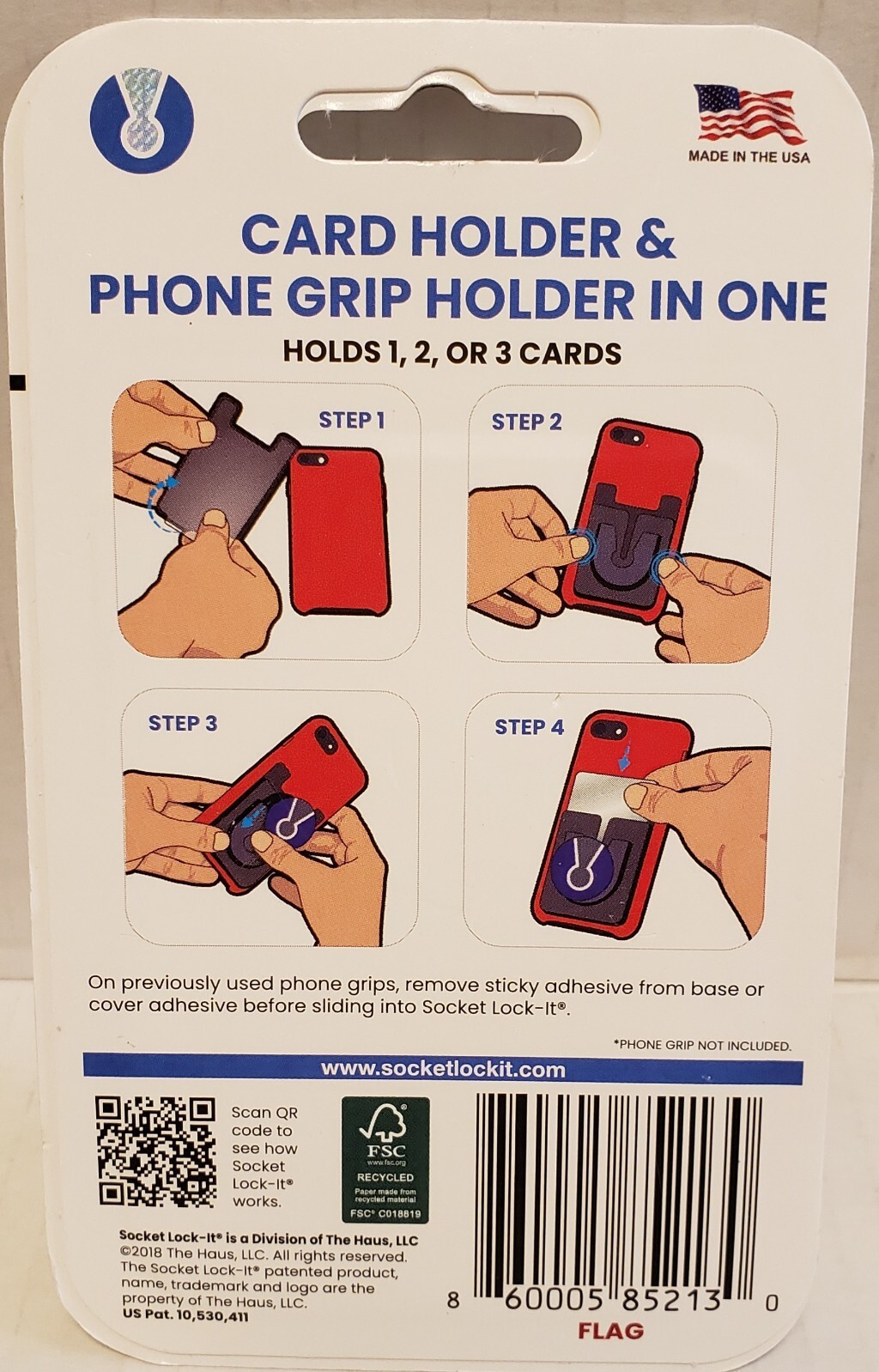 Socket Lock-It Card Holder Phone Grip Holder In One Up To 3 Cards USA Flag New