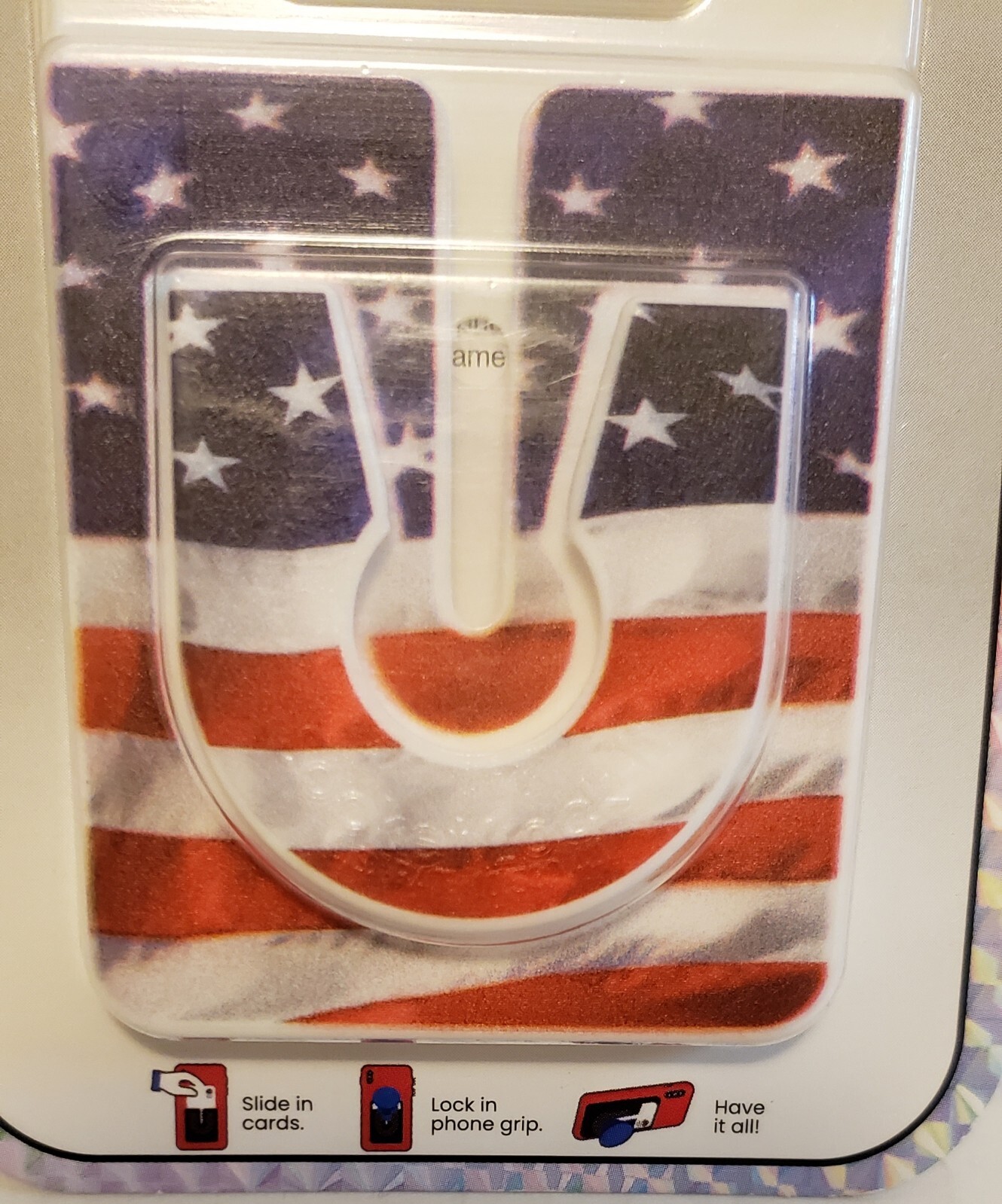 как выглядит Socket Lock-It Card Holder Phone Grip Holder In One Up To 3 Cards USA Flag New фото