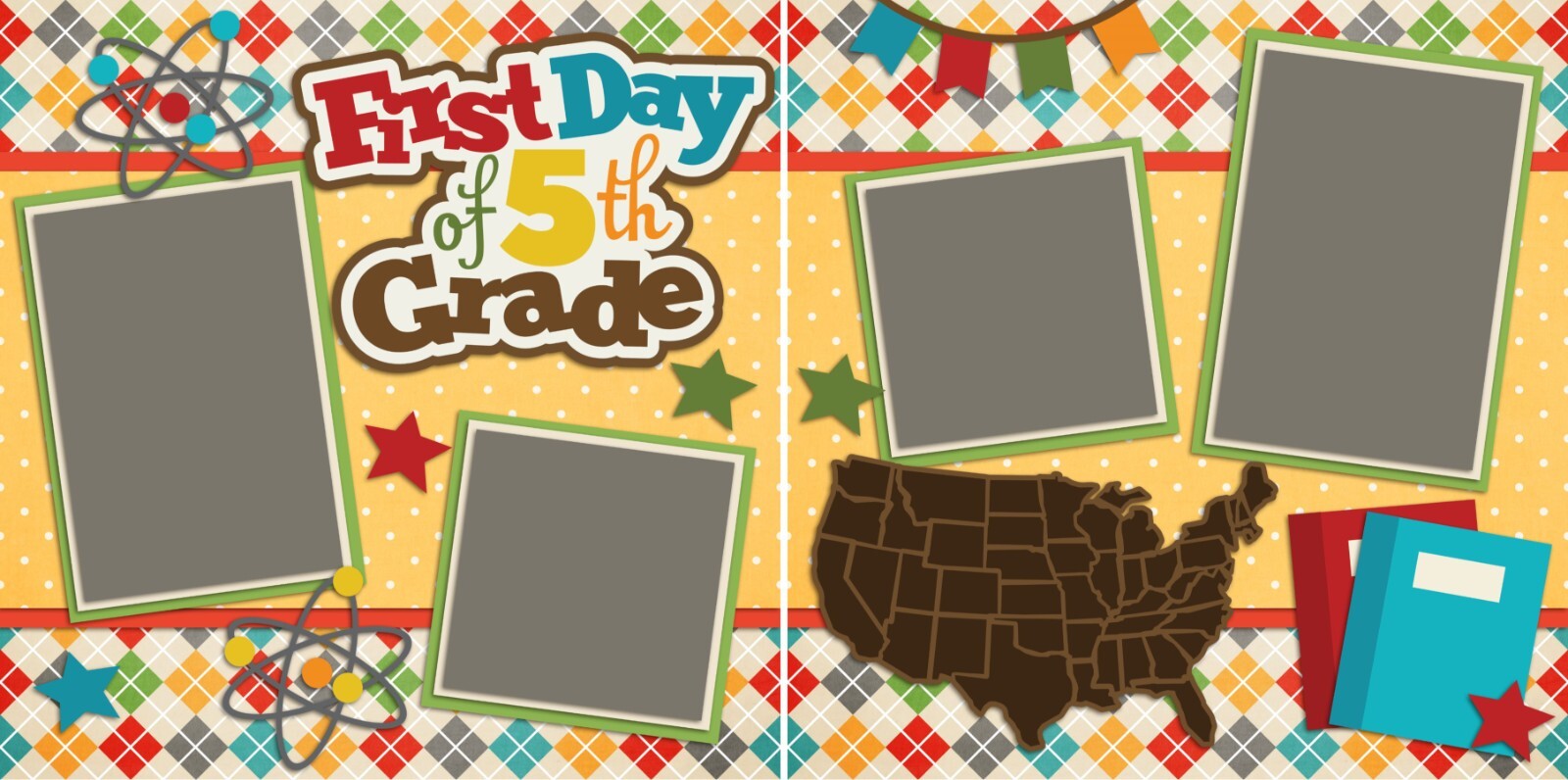 First Day of 6th Grade - 2 Premade Scrapbook Pages - EZ Layout 2221