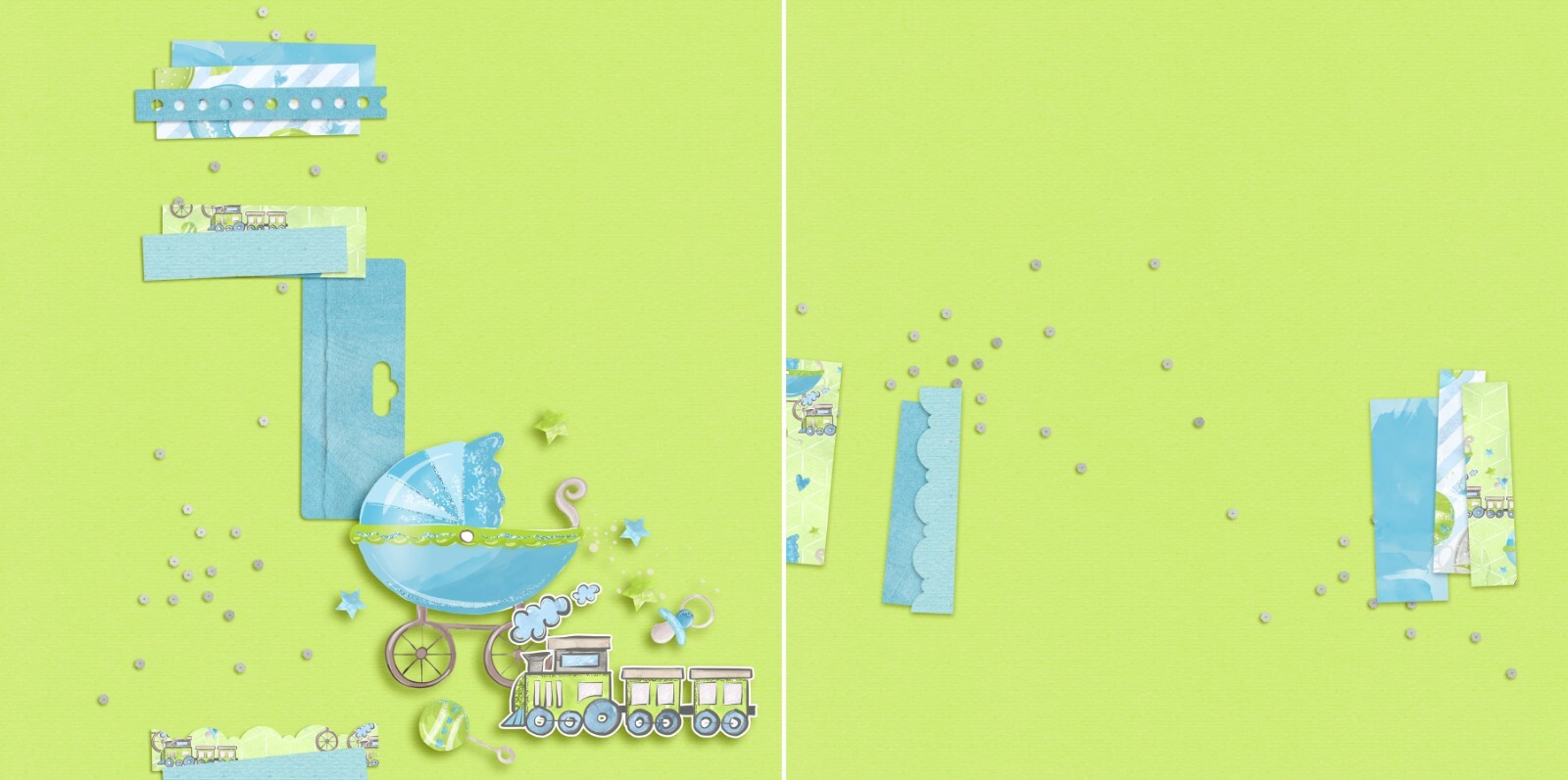 Baby Boy Carriage NPM - 2 Premade Scrapbook Pages - EZ Layout 6119