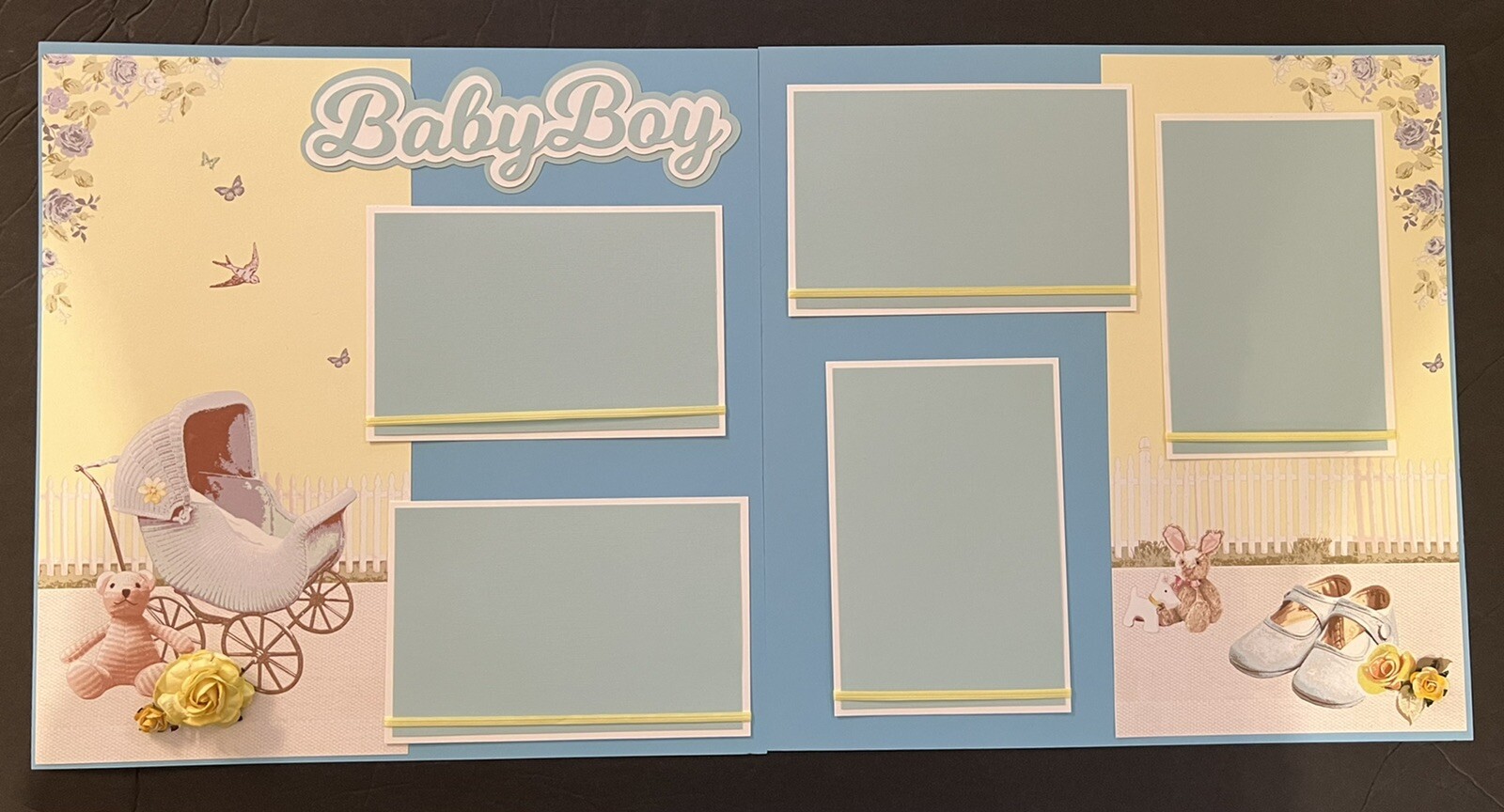 как выглядит 12X12 BABY BOY BLUES YELLOWS PREMADE SCRAPBOOK 2 PAGES LAYOUT- TONYA 4461 фото