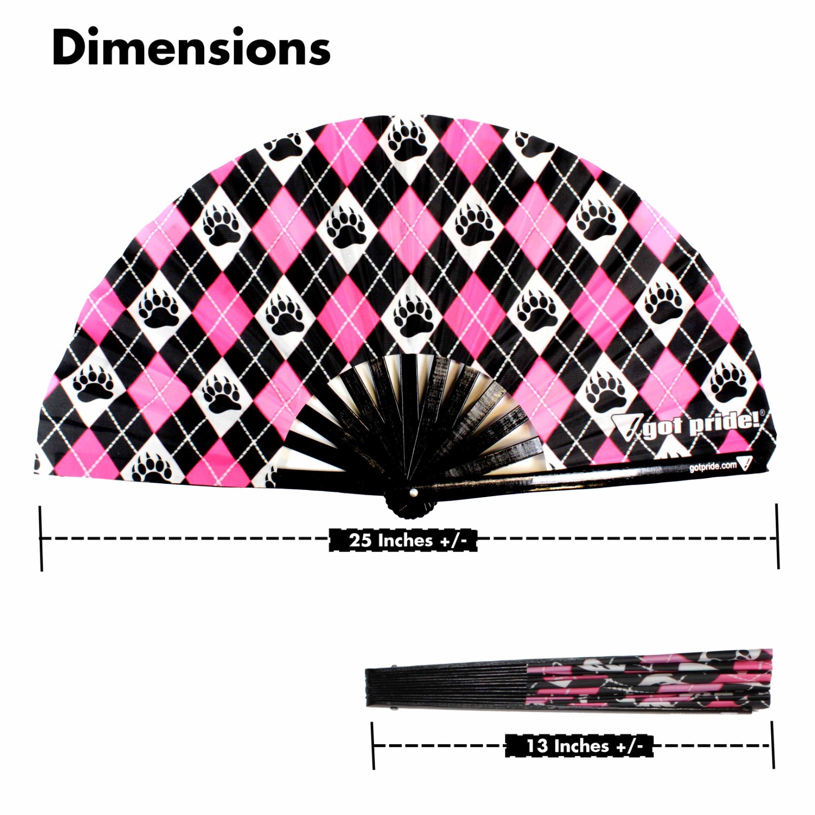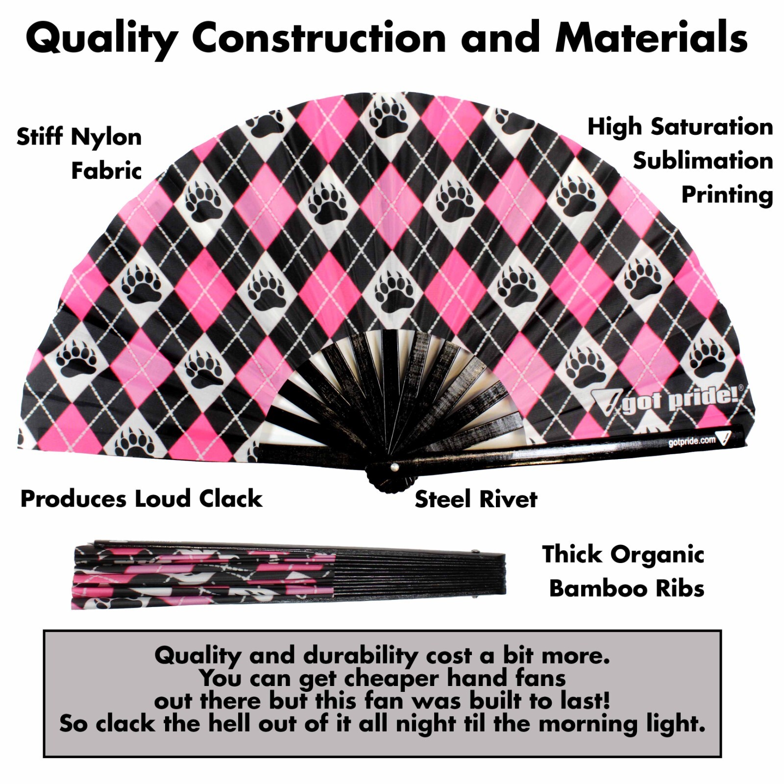 Bearly Pink Argyle Bamboo Folding Clack Hand Fan Rave Festival Pride LGBTQ Fan