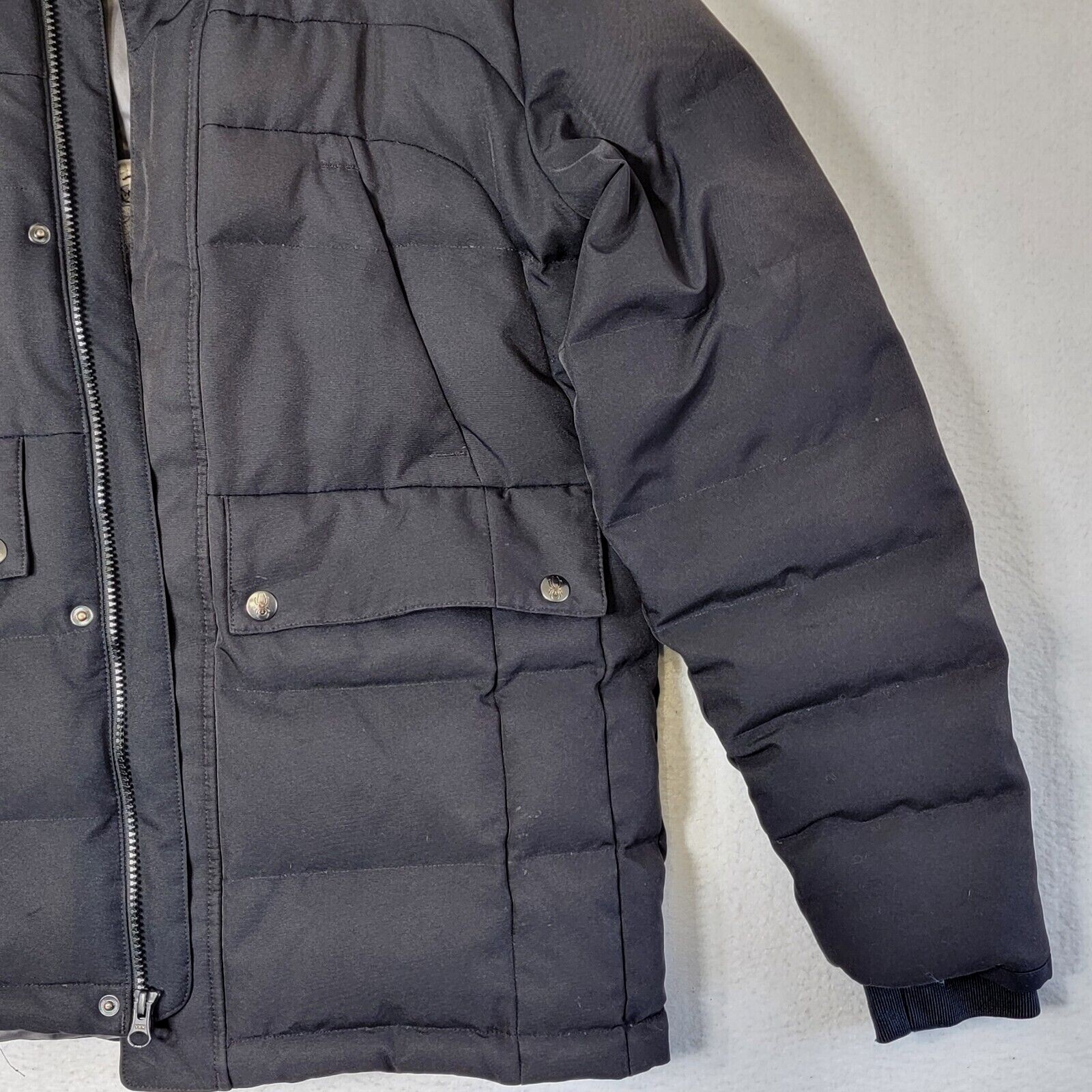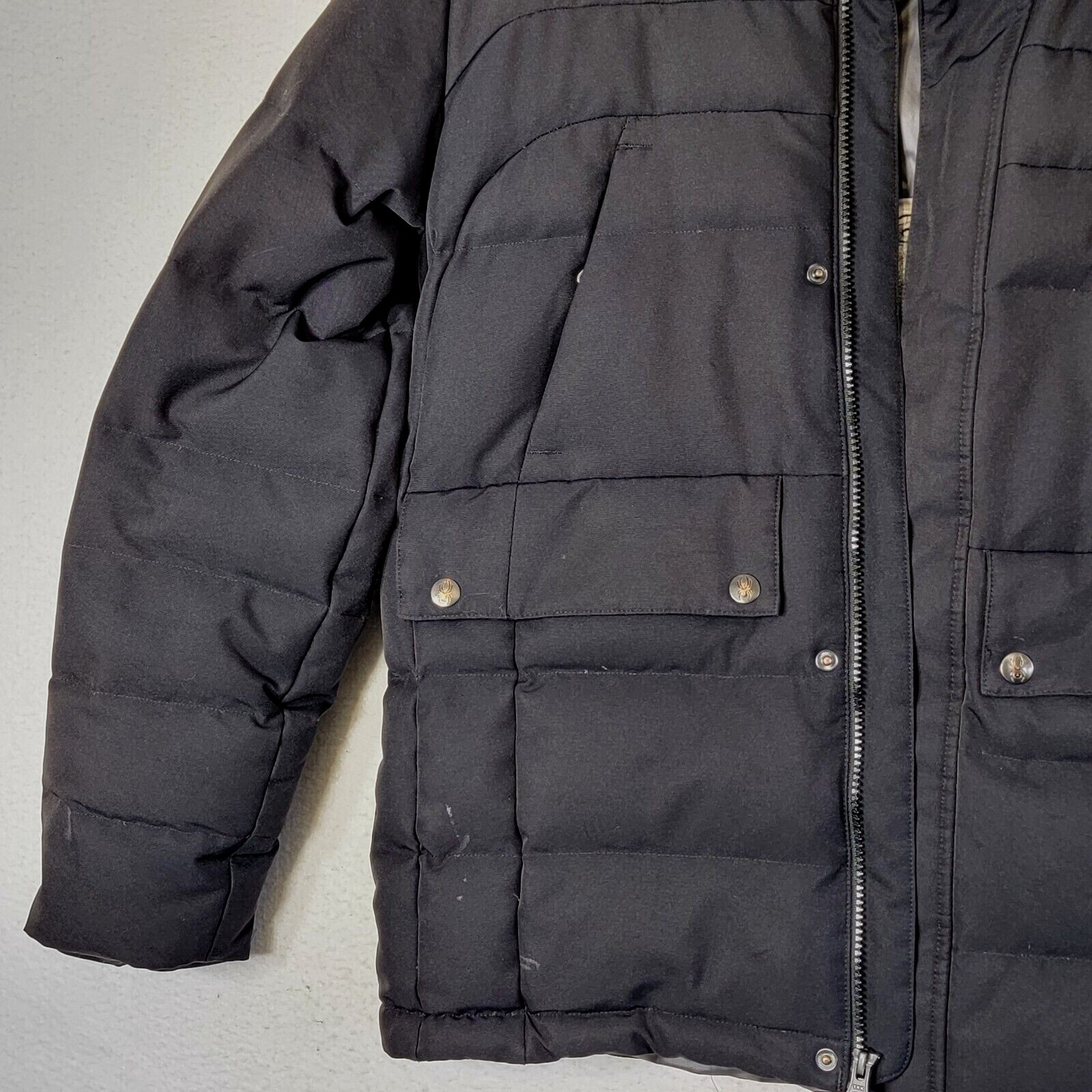 как выглядит Spyder Youth XL Black Full Zip Insulated Hooded Puffer Jacket Embroidered Custom фото