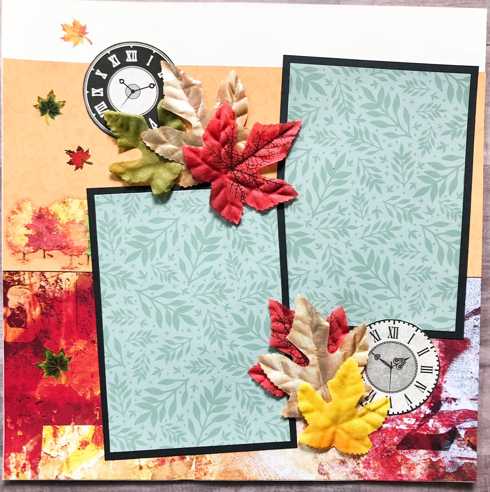 Fall Scrapbook Pages, 12 by 12 Autumn Pages, Premade Fall Layouts, Autumn Layout