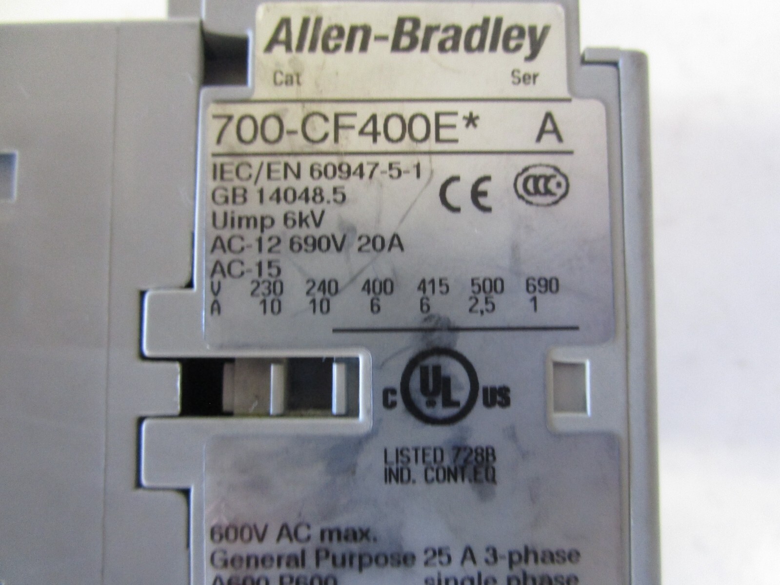 ALLEN-BRADLEY 700-CF400E SERIES A CONTACTOR RELAY - USED - FREE SHIPPING