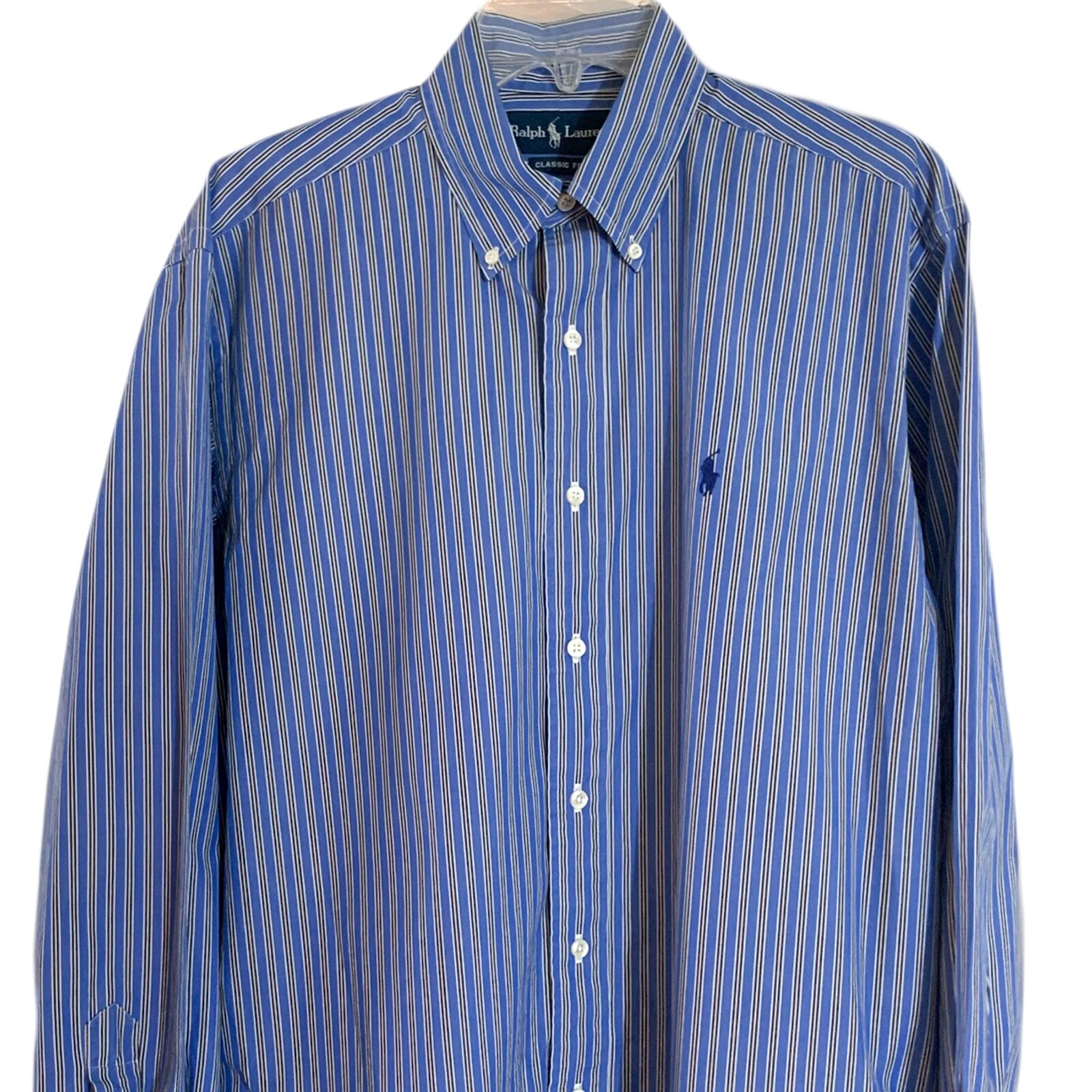 как выглядит Ralph Lauren Mens Classic-Fit Blue Striped Dress Shirt size 15.5 фото