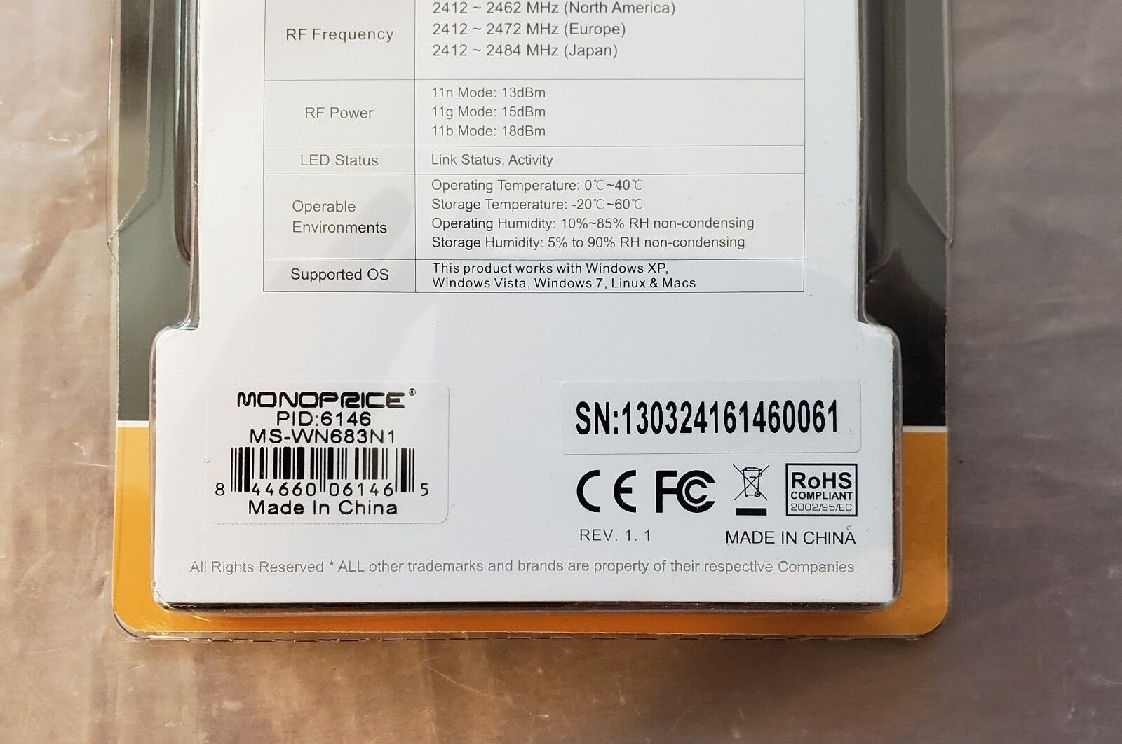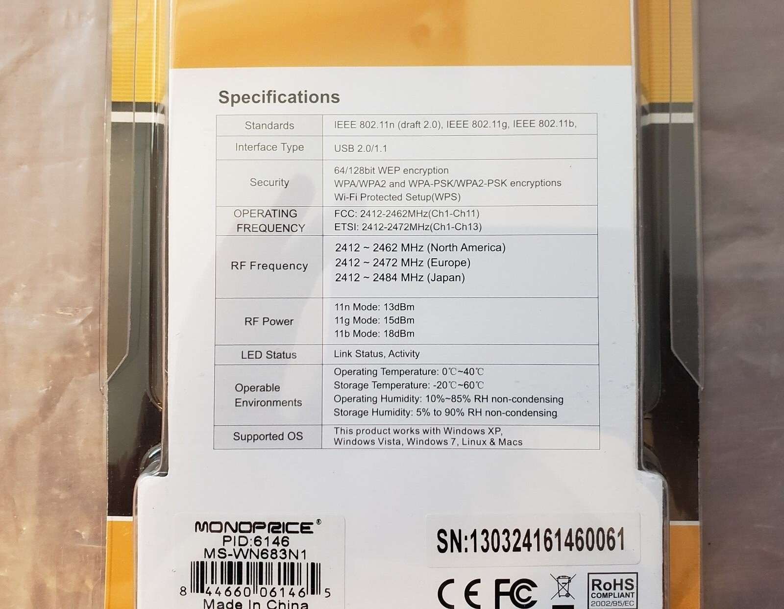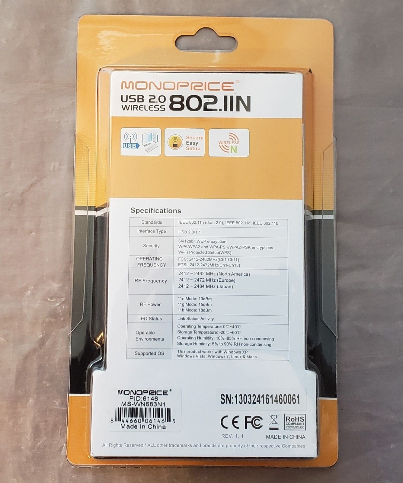Monoprice Mini USB Wireless Lan 802.11N Adapter Dongle 106146