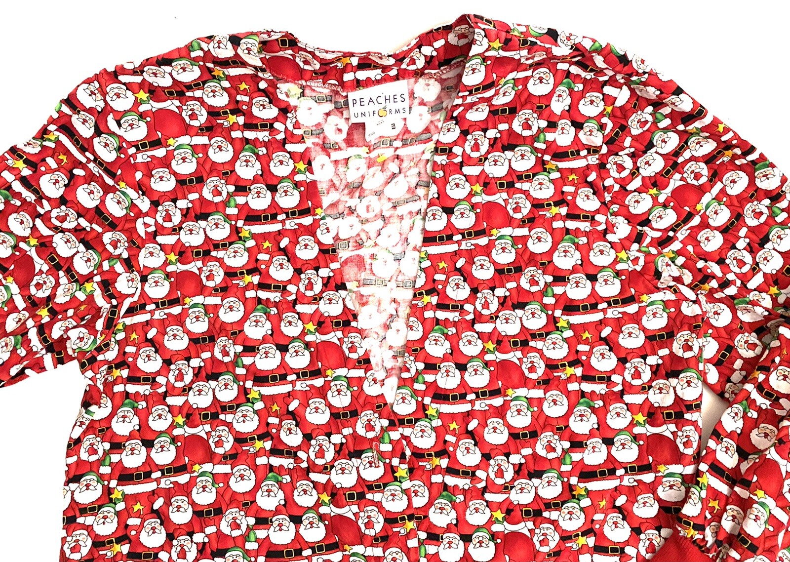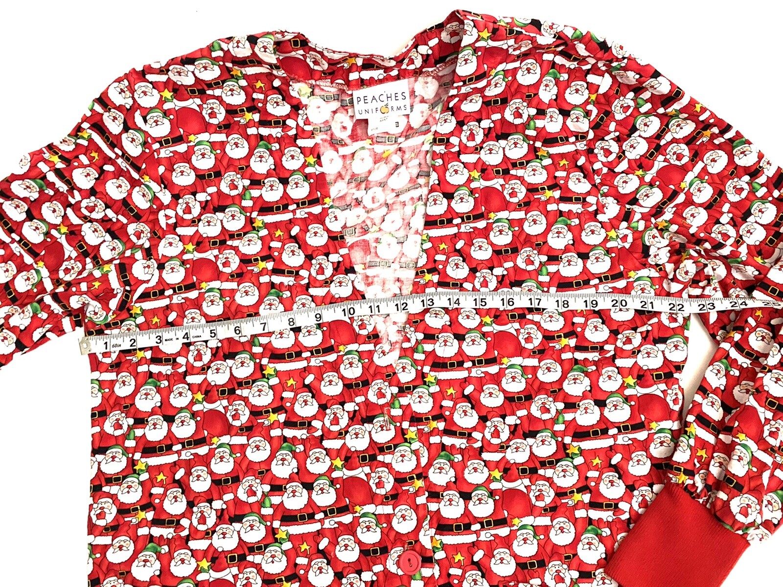 Peaches Uniforms Colorful Santa Claus Long Sleeve Scrub Coat Women Small