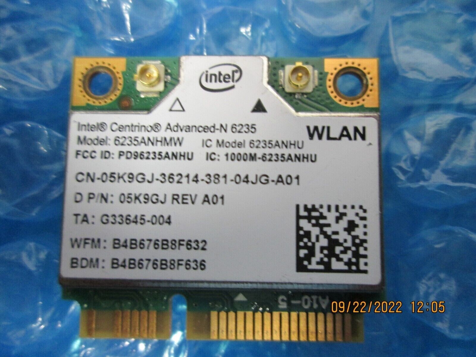 LOT OF 5 Intel Centrino Advanced-N 6235 6235ANHMW Wireless Card 05K9GJ 5K9GJ