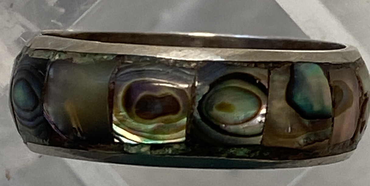 BEAUTIFUL STERLING SILVER RING WITH MOTHER OF PEARL INLAY VERY GOOD CONDITION