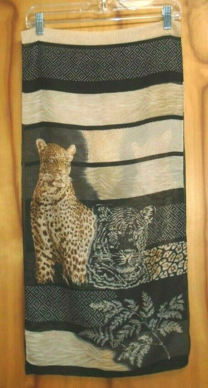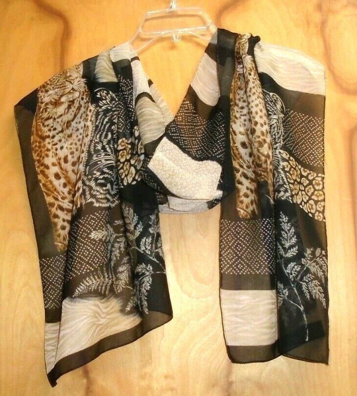 как выглядит Italian Shades of Brown Grey Jungle Animals Design Pure Silk Chiffon Scarf фото