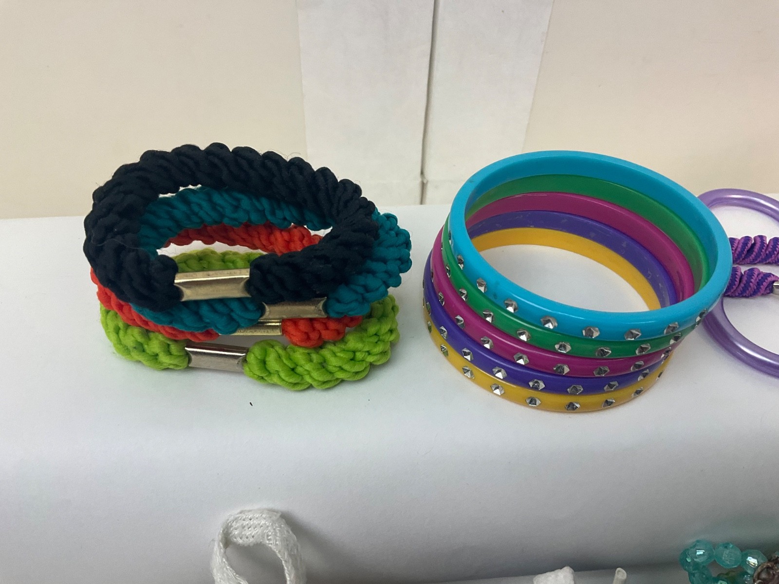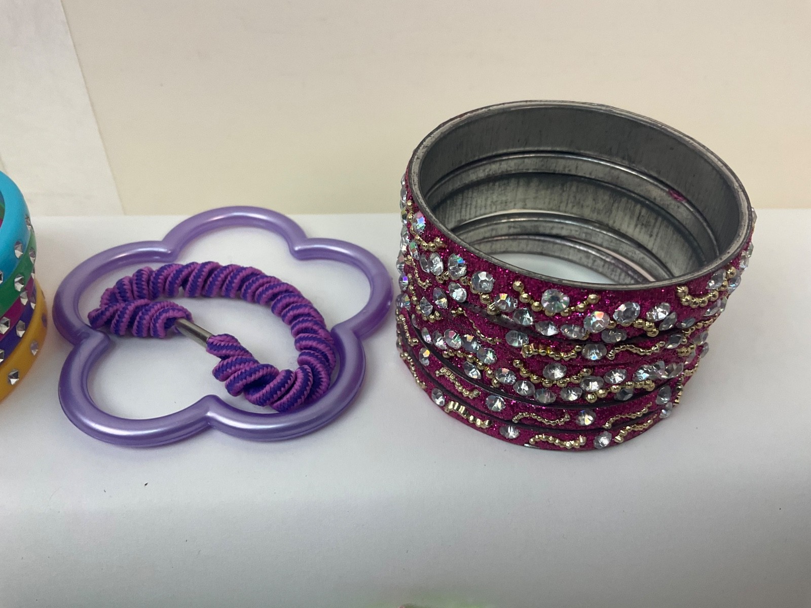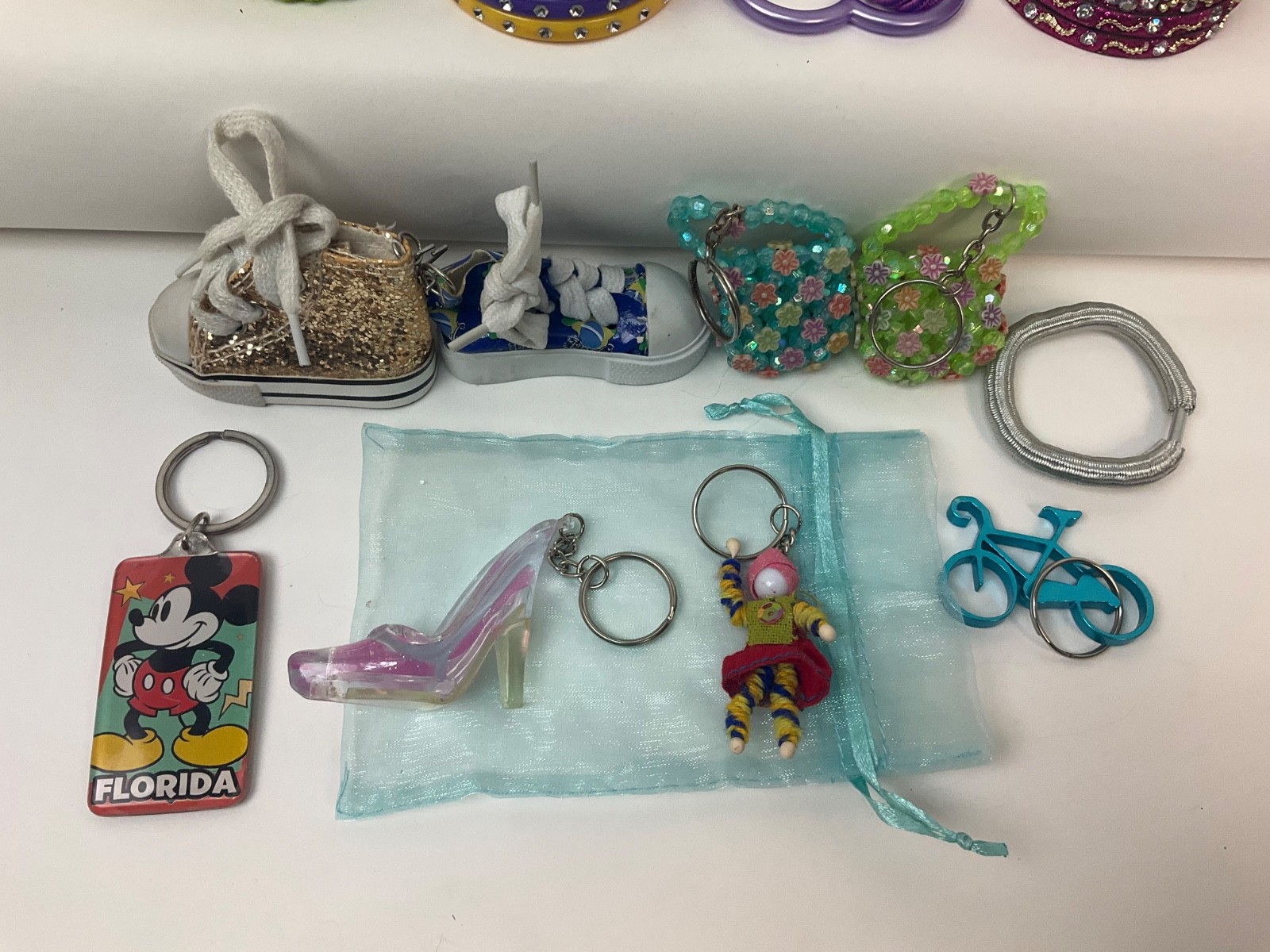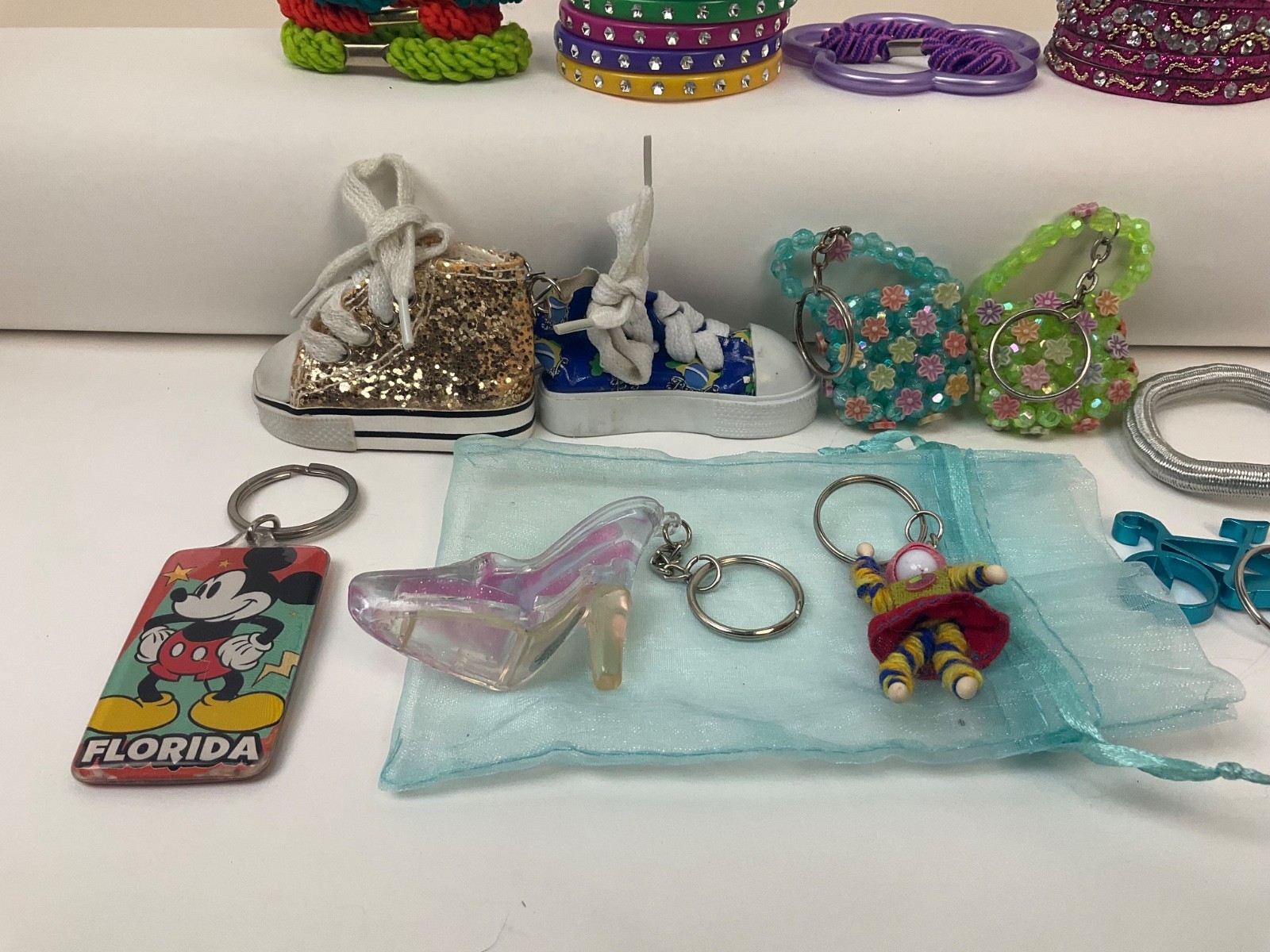Lot 25 Hair-Ties Bangle Bracelets Key Chain Dress-Up Sparkle Glitter Shoe Purse