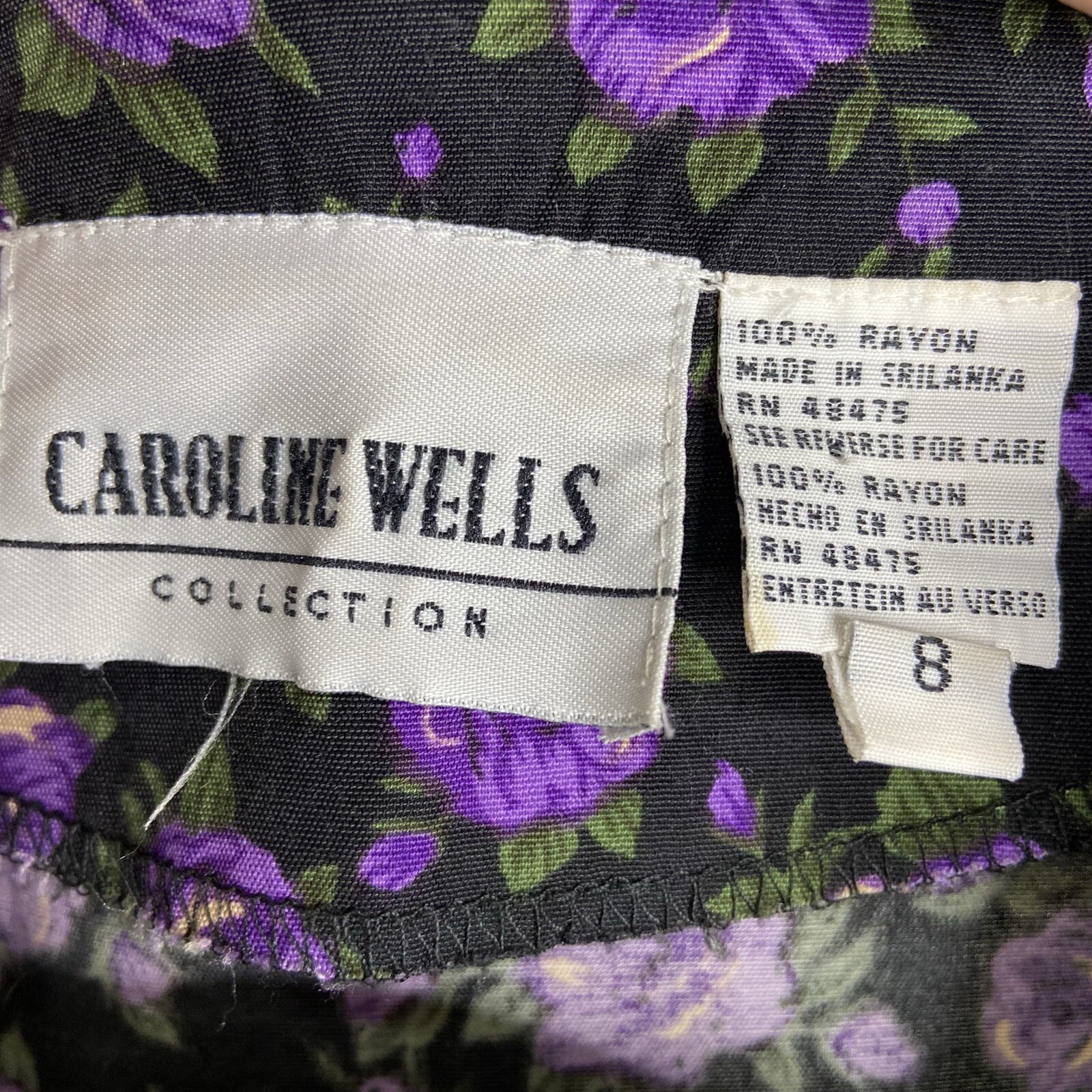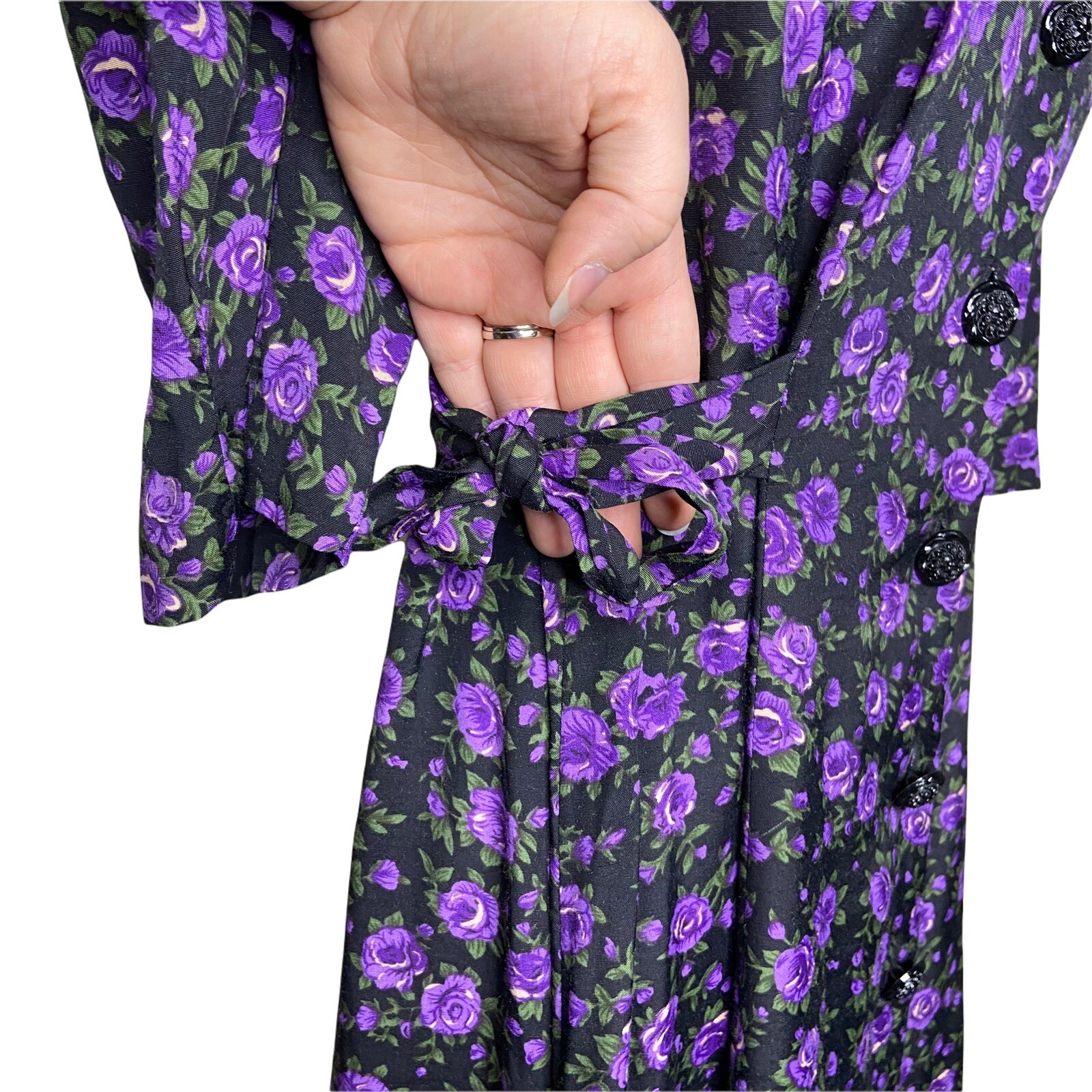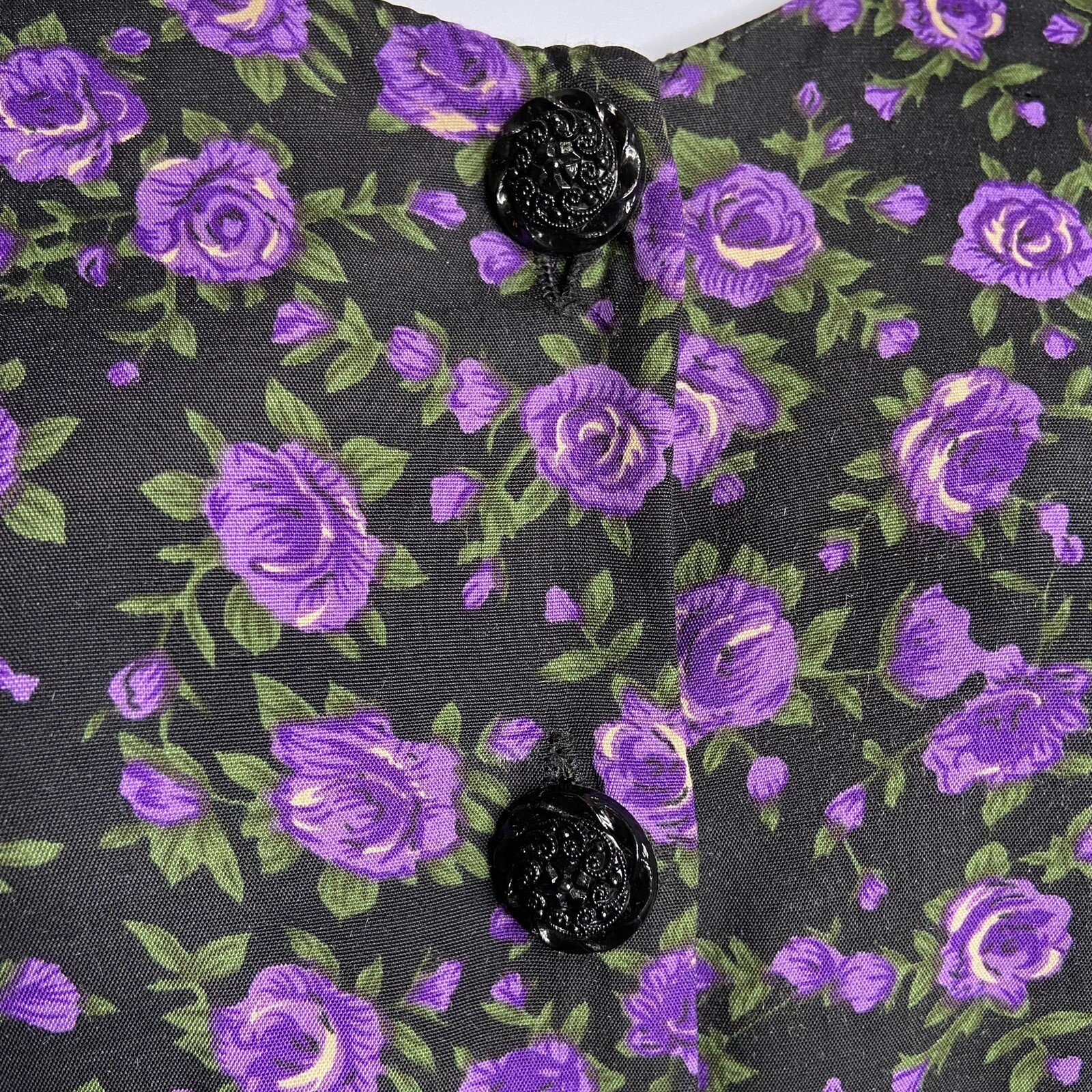 Vintage Button Up Church Dress Size 8 Black Purple Floral Dark Cottage Core Rose