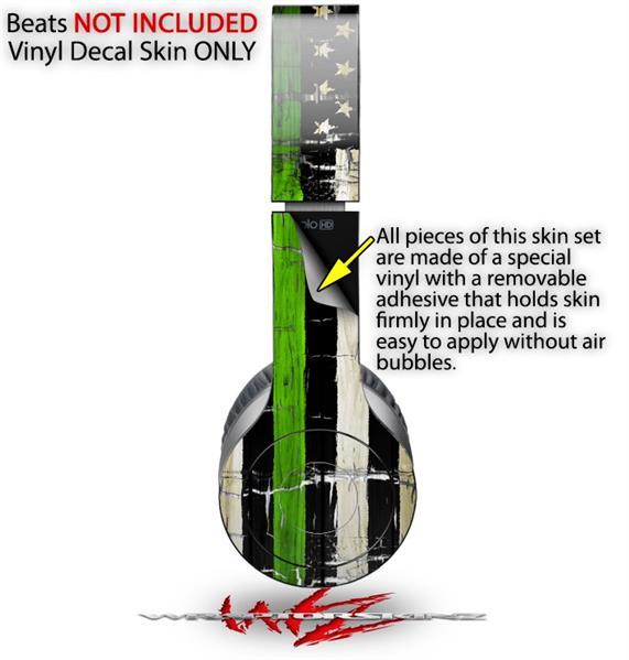 Skin for Beats Solo HD Headphones Cracked Green Line USA American Flag
