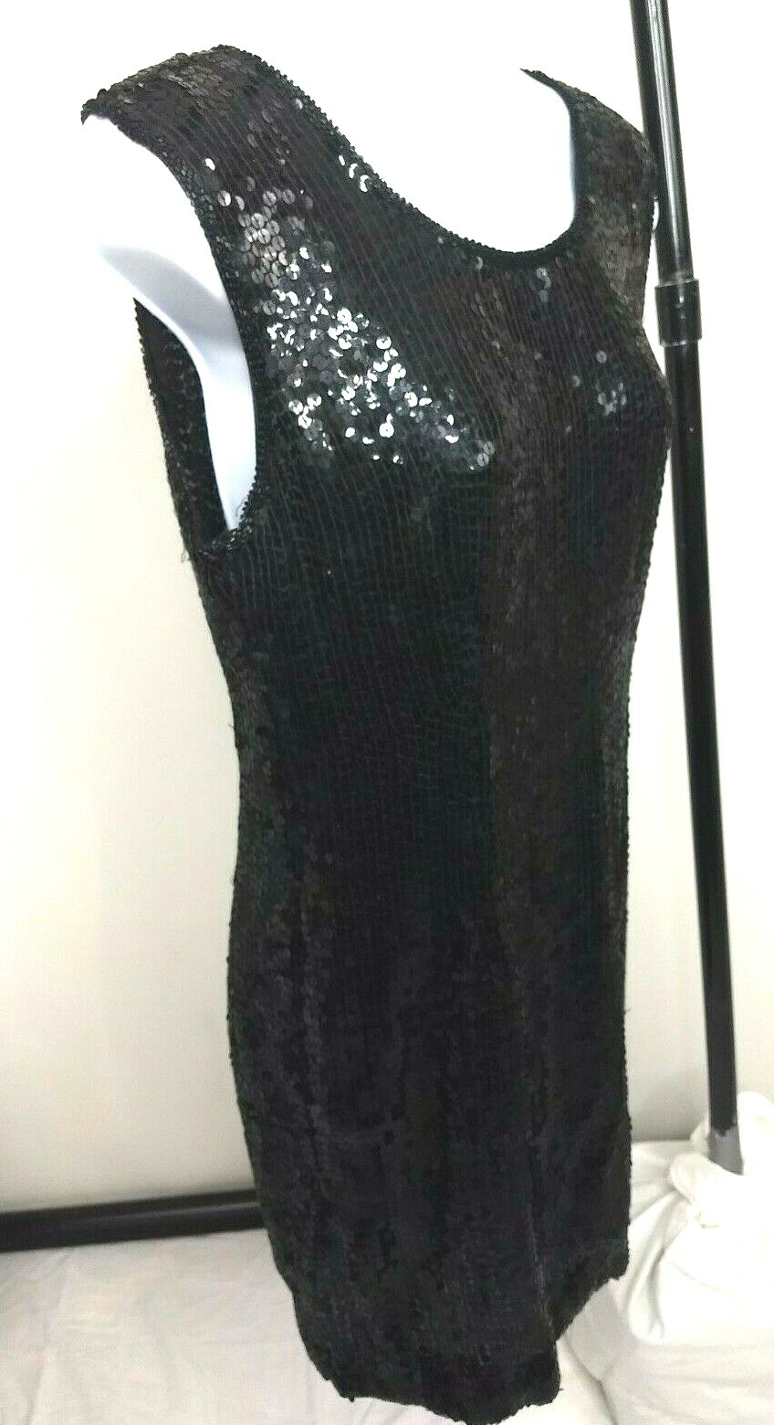 как выглядит VTG 80s Scarlet Rage Sz Lg Full Black Sequined Hemmed Zip Back Evening Dress фото