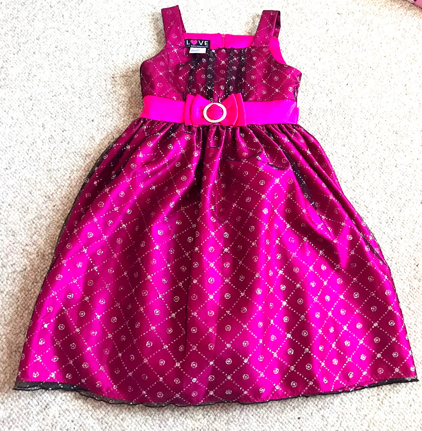 Love by special occasions Black Hot Pink Sparkly Bow Formal Party Dress 10