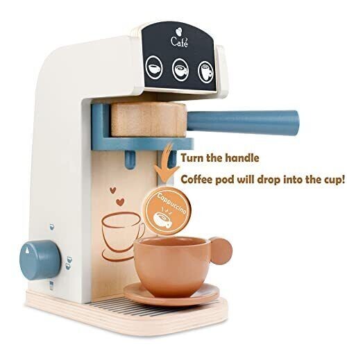 PairPear Kids Wooden Toy Coffee Maker Playset