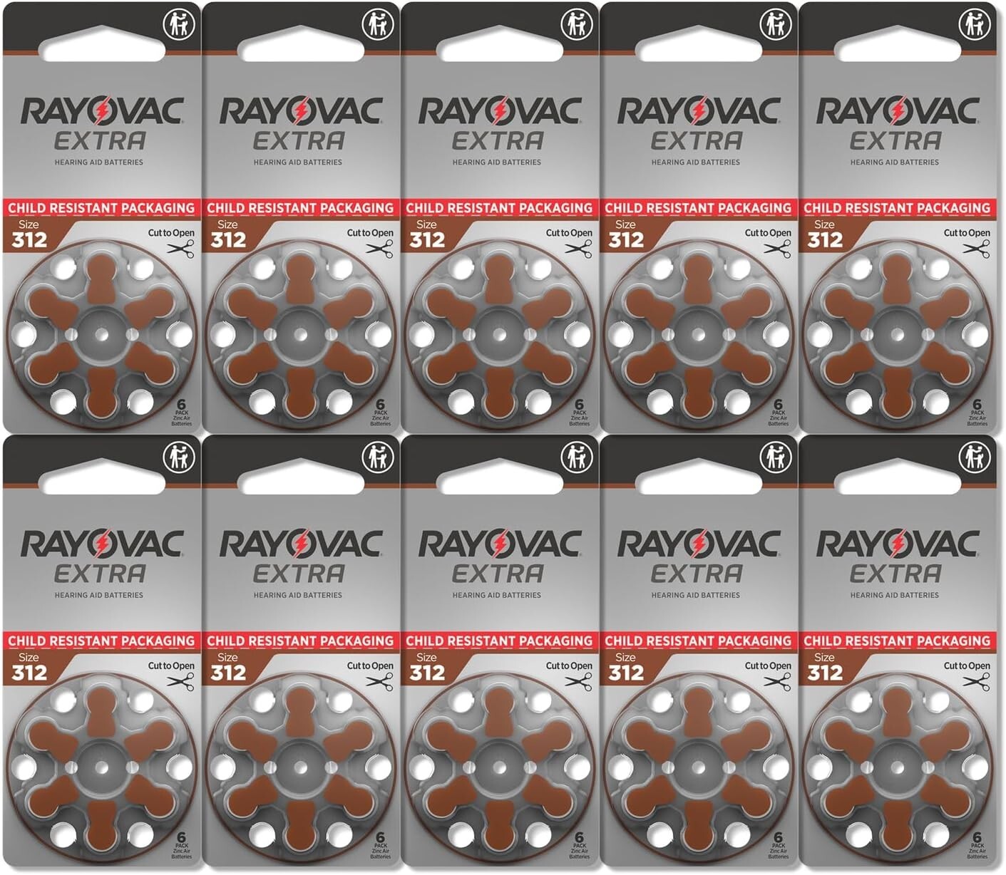 60 x Rayovac Extra 312 Size Hearing aid batteries Zinc air 10 Packs Used By 2029