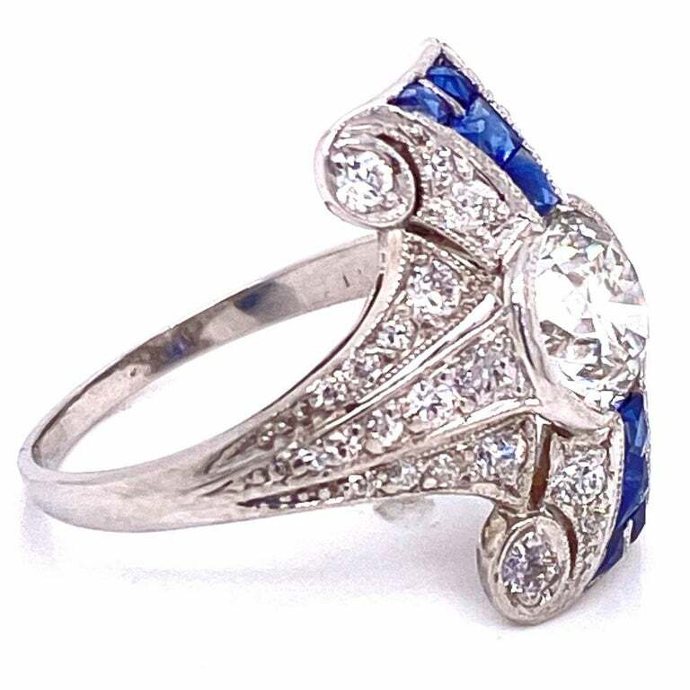 935 Silver Lab-Created Old European Cut CZ With Fine Blue Sapphire Women Ring