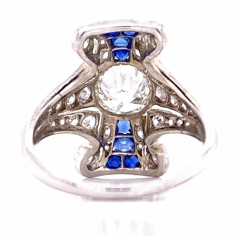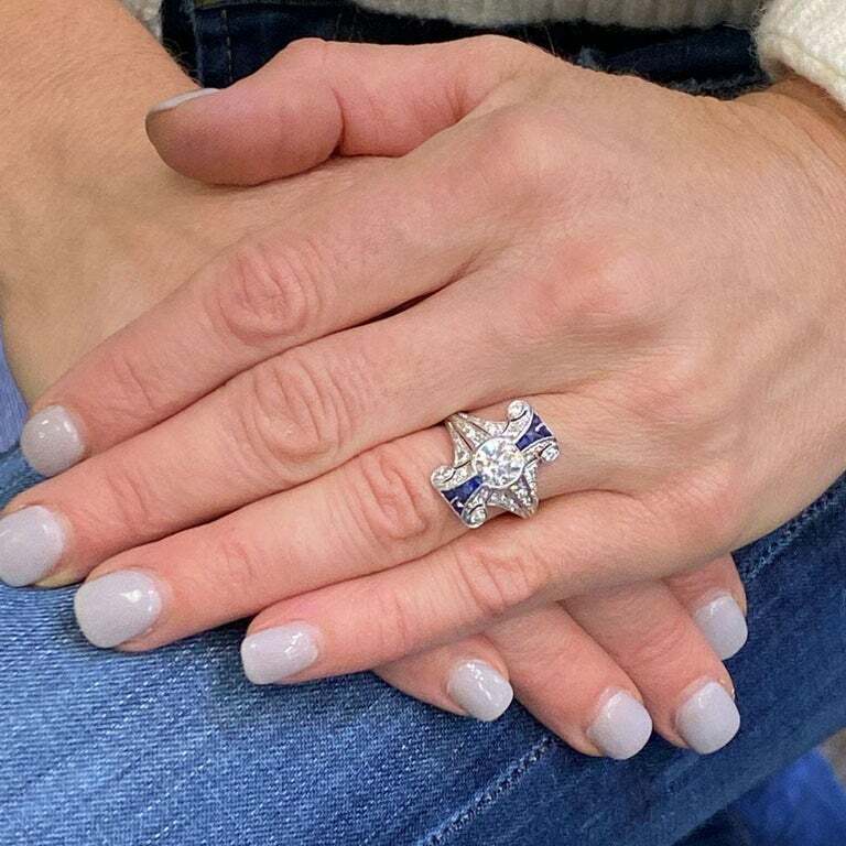 как выглядит 935 Silver Lab-Created Old European Cut CZ With Fine Blue Sapphire Women Ring фото