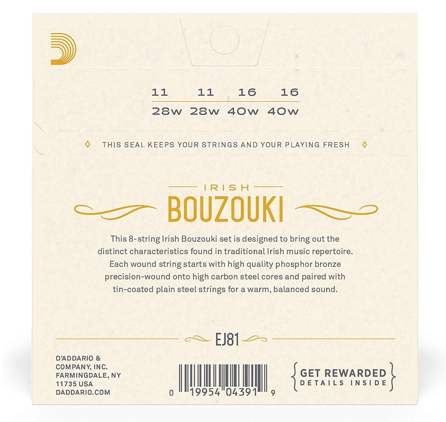 Daddario EJ81 Set of 8 Phosphor Bronze Wound Irish Bouzouki Strings, New