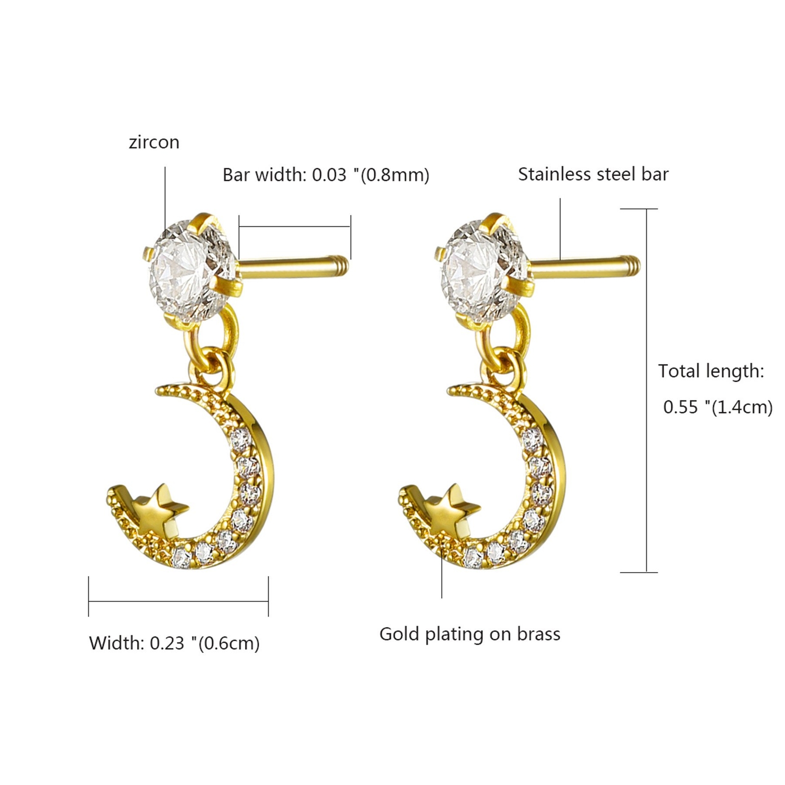 как выглядит 4-12pcs Women Stainless Steel CZ Cross Moon Star Dangle Stud Earrings Piercings фото