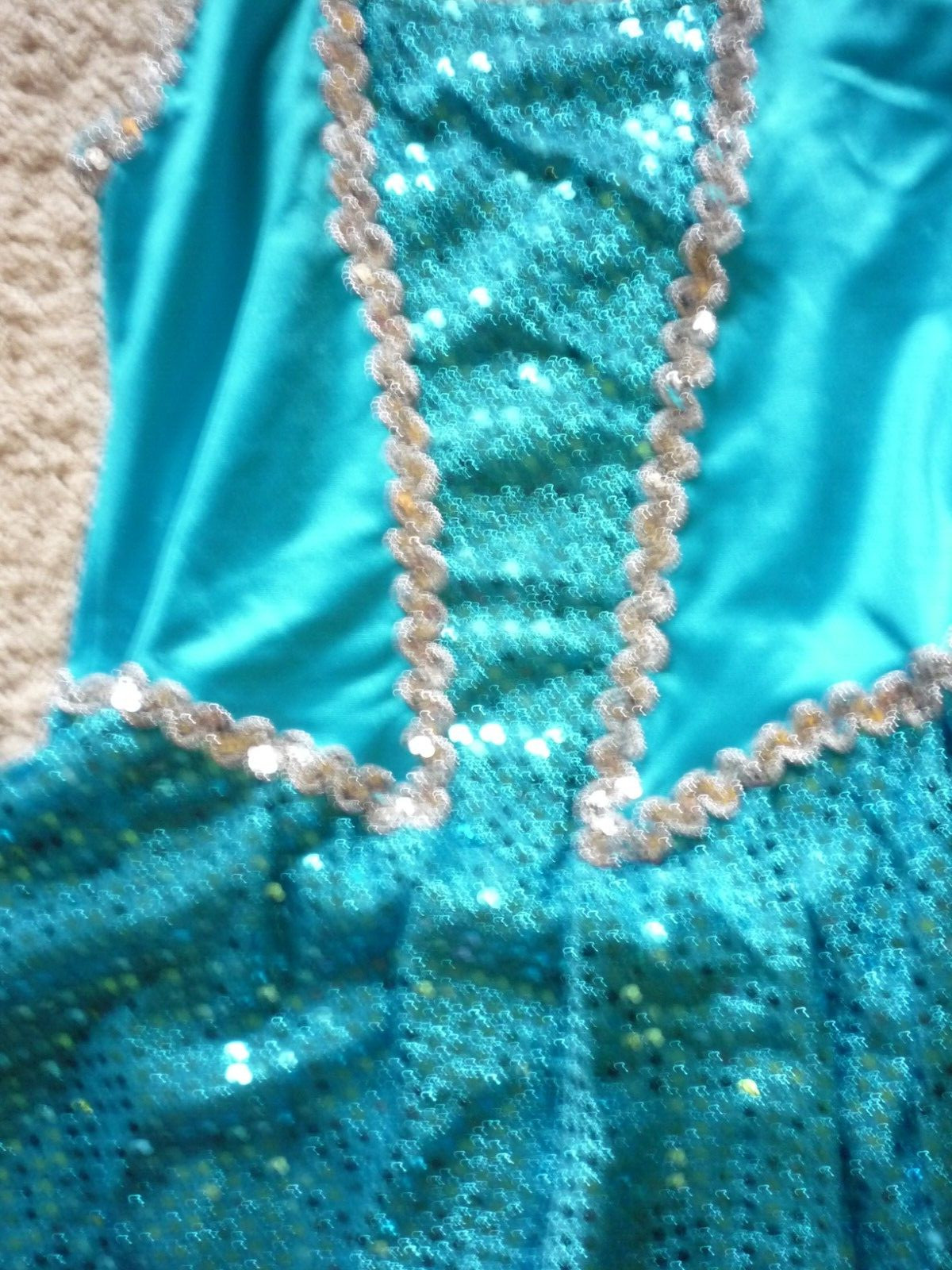 как выглядит DANCEWEAR -ICE SKATE COSTUME-SZ LG CHILD-STAR STYLED LEOTARD-TURQUOISE/SILVER фото