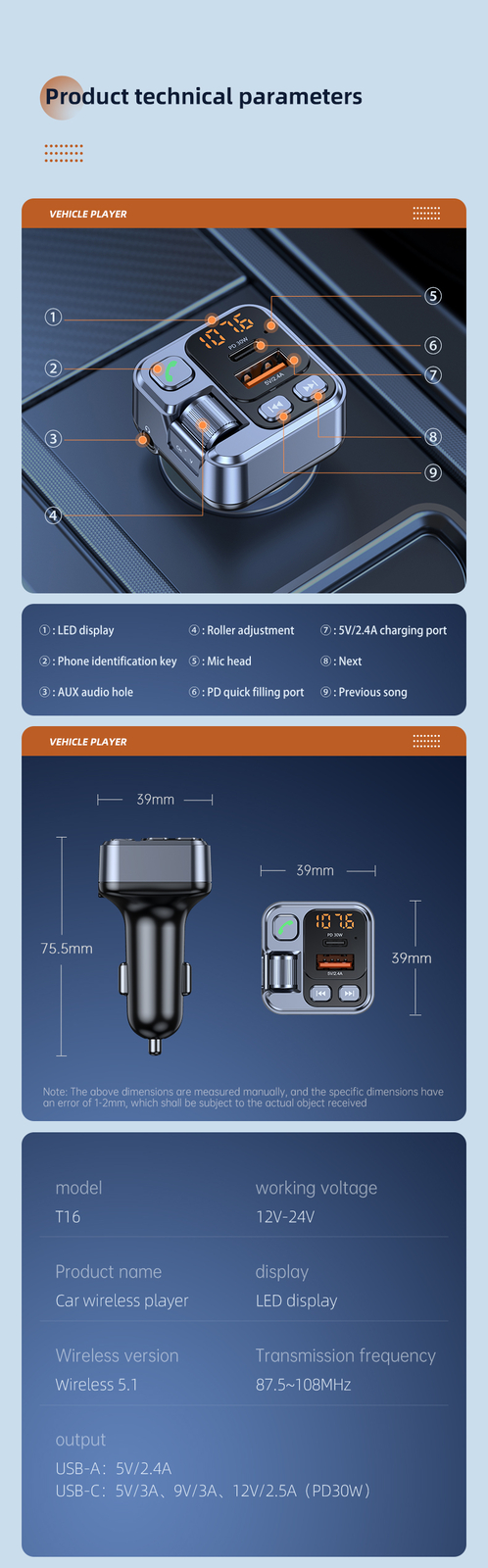 как выглядит New PD 30W Wireless Bluetooth 5.1 FM Transmitter Hands Free Car Kit MP3 Player фото