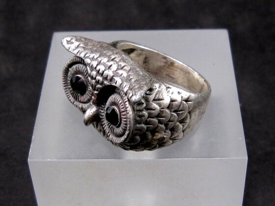 как выглядит BEAUTIFUL VINTAGE SILVER PLATED OWL RING фото