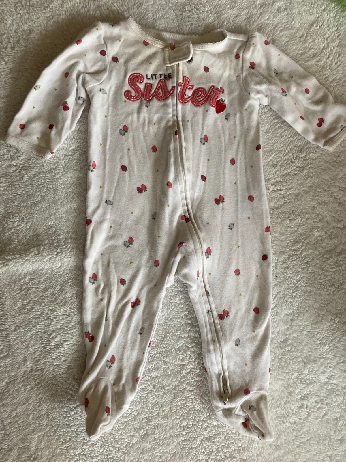 Set of 7 Baby Girl Sleeper Pajamas Pjs Sleepwear Zip Up Snap Pink White 6 Months