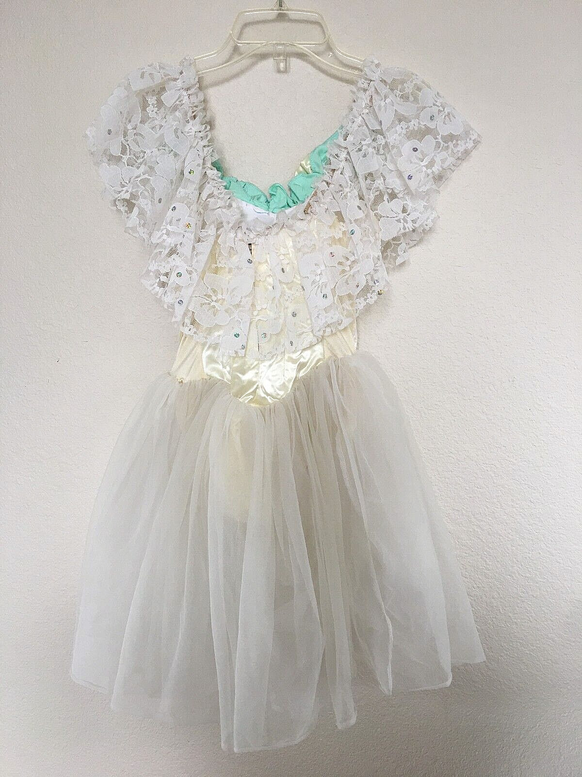 как выглядит Sparkling Cream color Ballet performance costume with lace and sequins фото