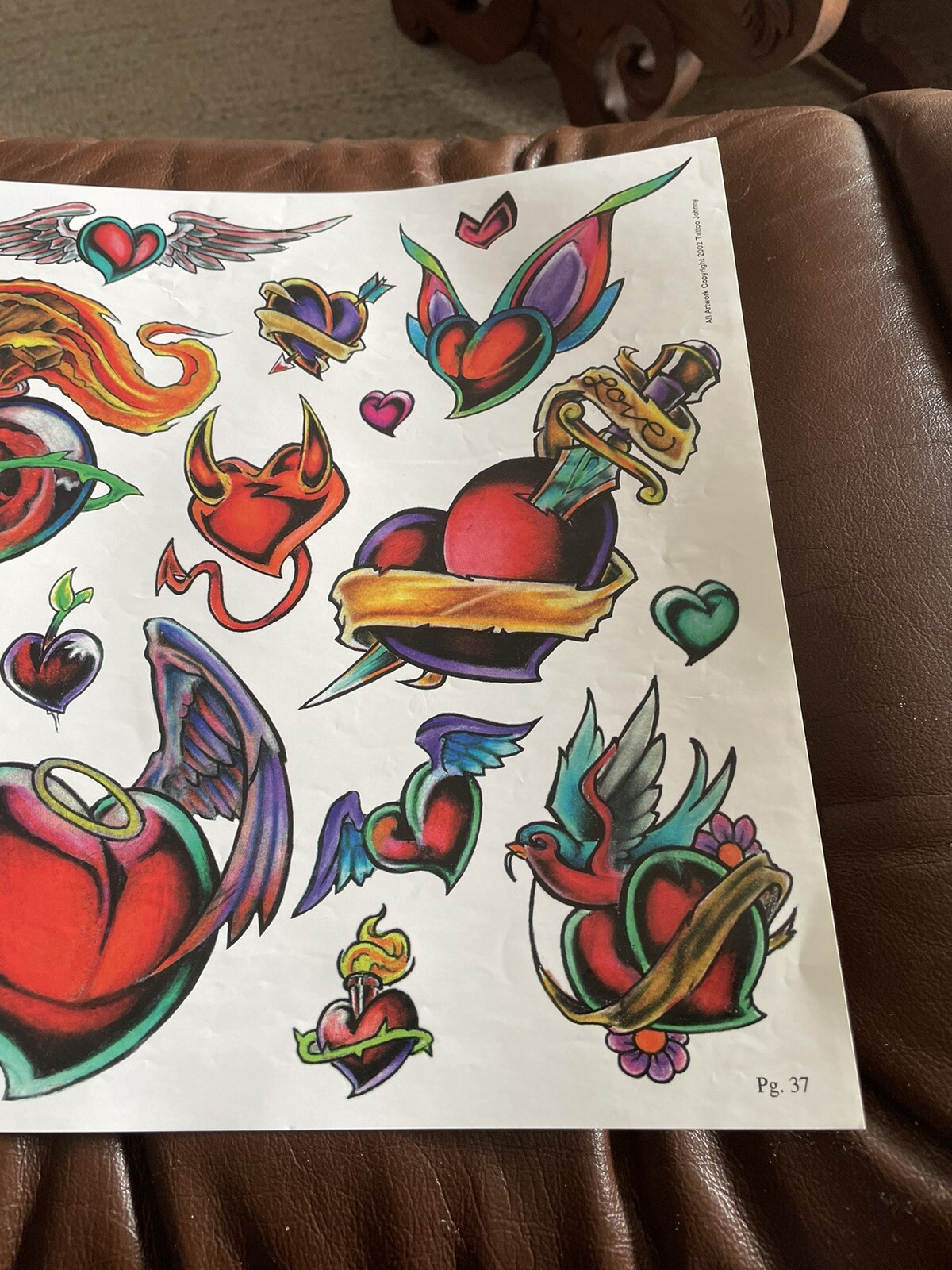 как выглядит Lot 26 Vintage Tattoo flash art paper sheet Kelly Gormley 2002 hearts фото