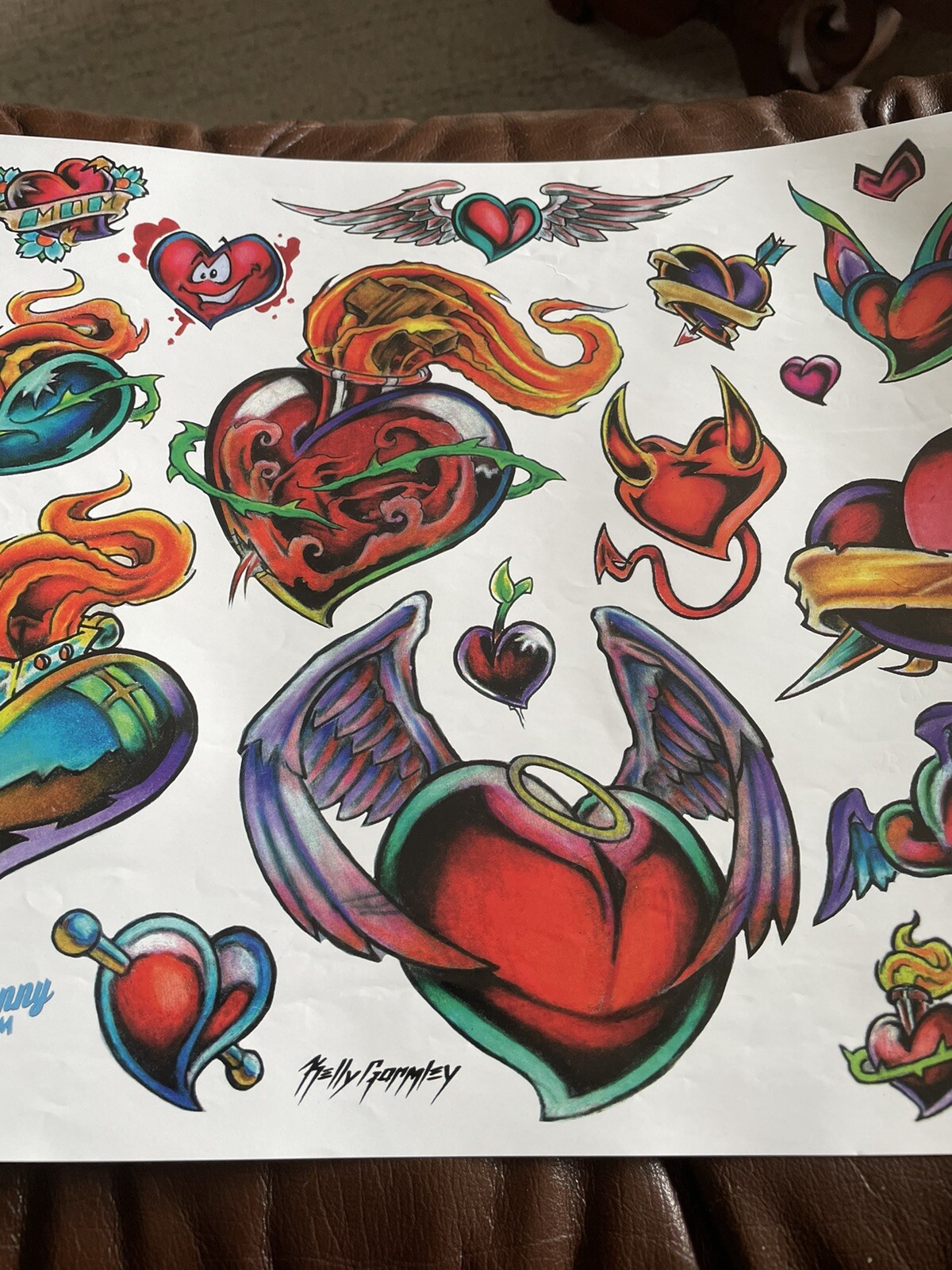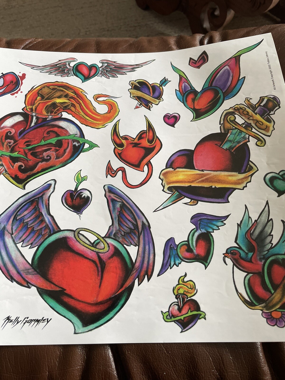 Lot 26 Vintage Tattoo flash art paper sheet Kelly Gormley 2002 hearts
