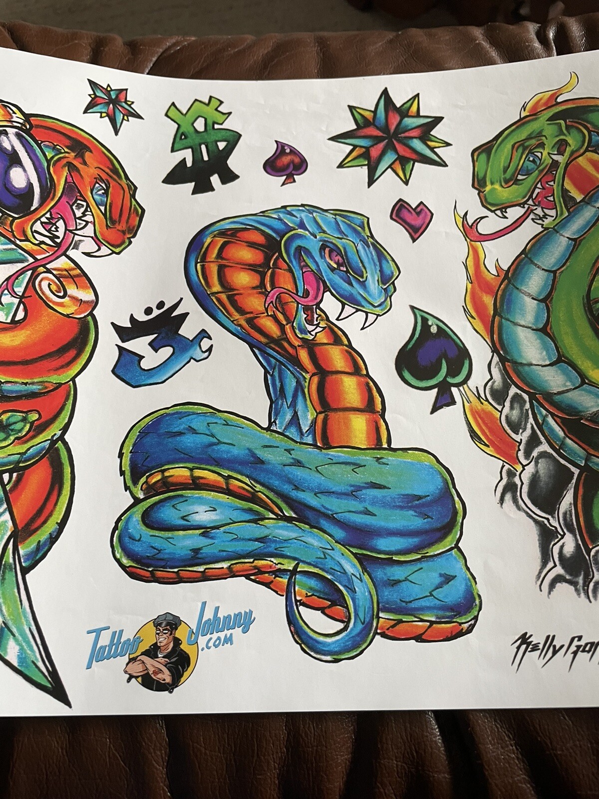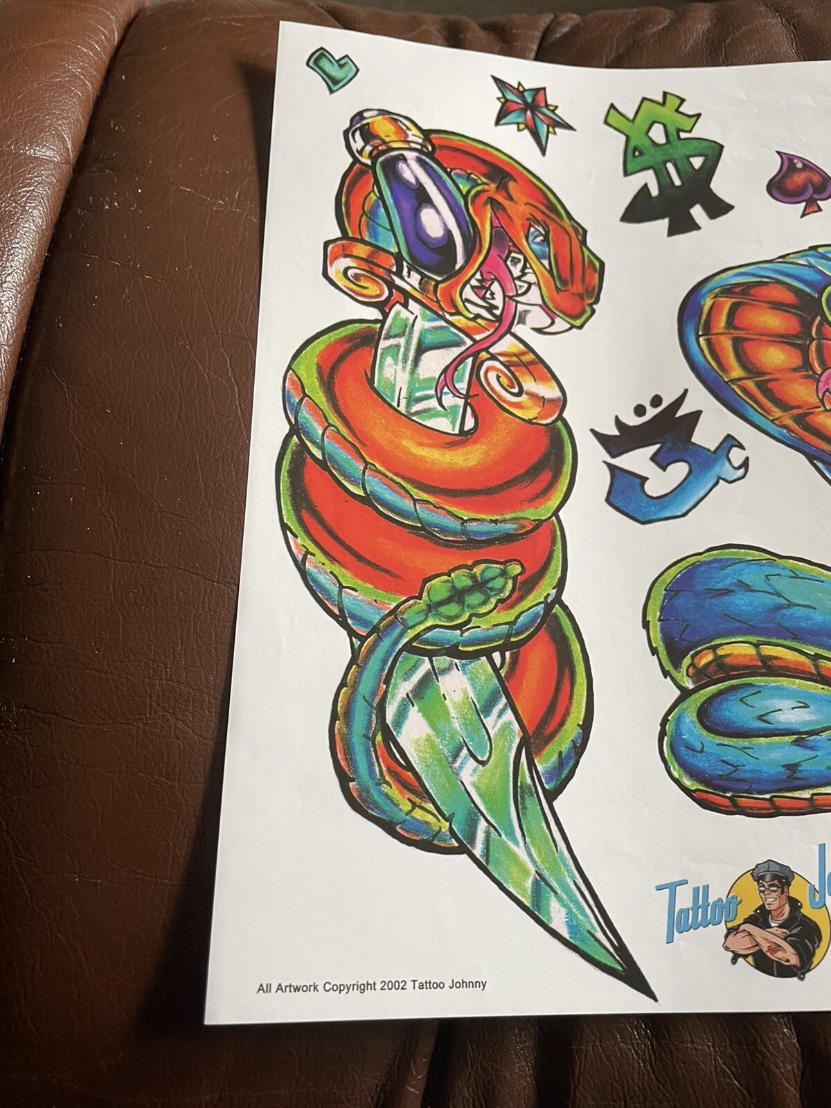 Lot 27 Vintage Tattoo flash art paper sheet Kelly Gormley 2002 snakes